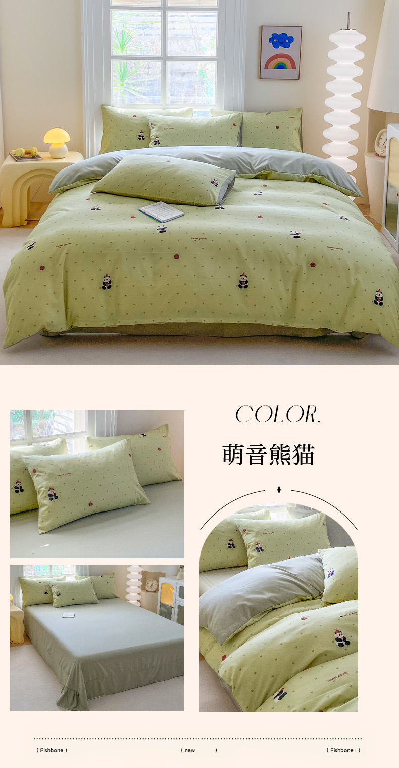 商品名称:富缦庭2025新款A类针织双层纱四件套萌音熊猫