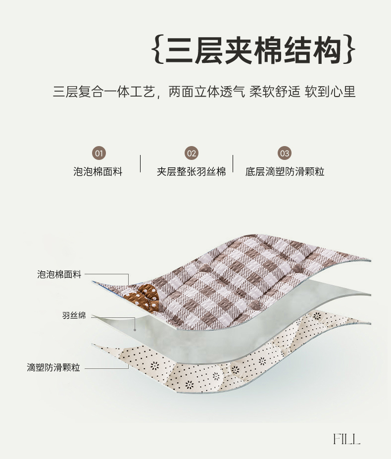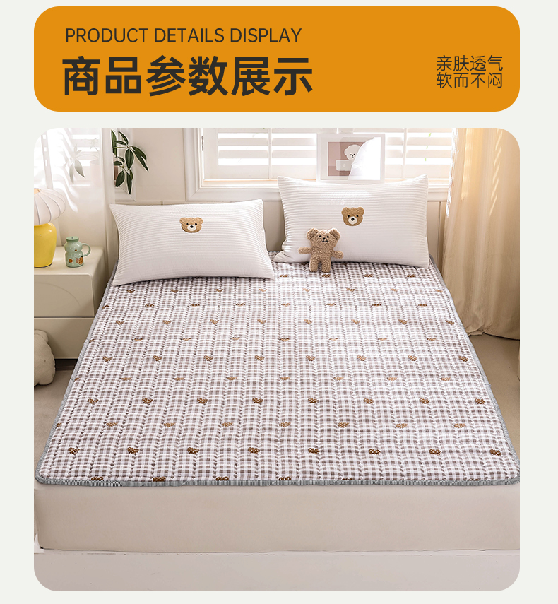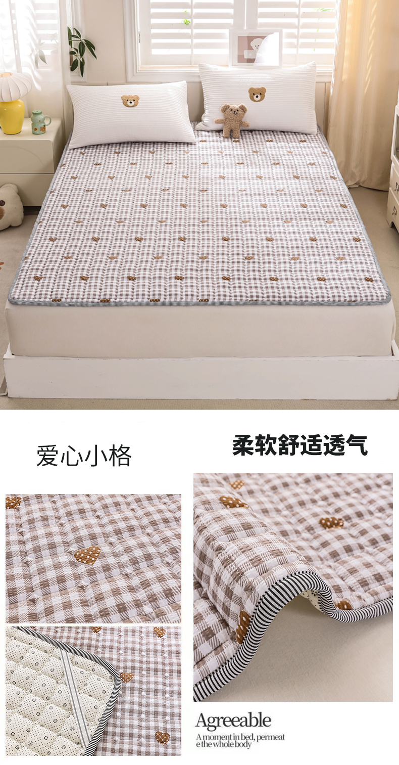 商品名称:正邦家纺 2025新款泡泡棉软糯夹棉床褥床垫 爱心小格