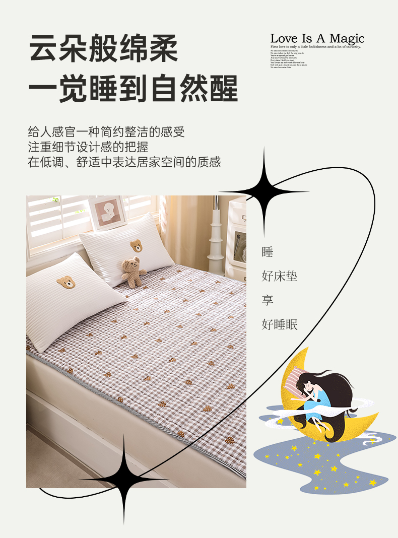 (总)正邦家纺 2025新款泡泡棉软糯夹棉床褥床垫,爱心小格,春光里,繁花,蝴蝶结,萌宠乐园,蜜桃之恋,牡丹花开,夕颜,月光女孩