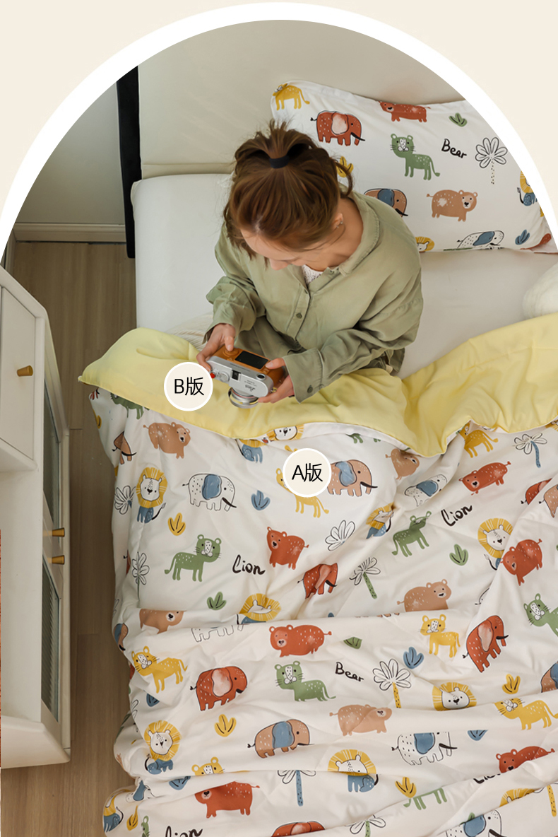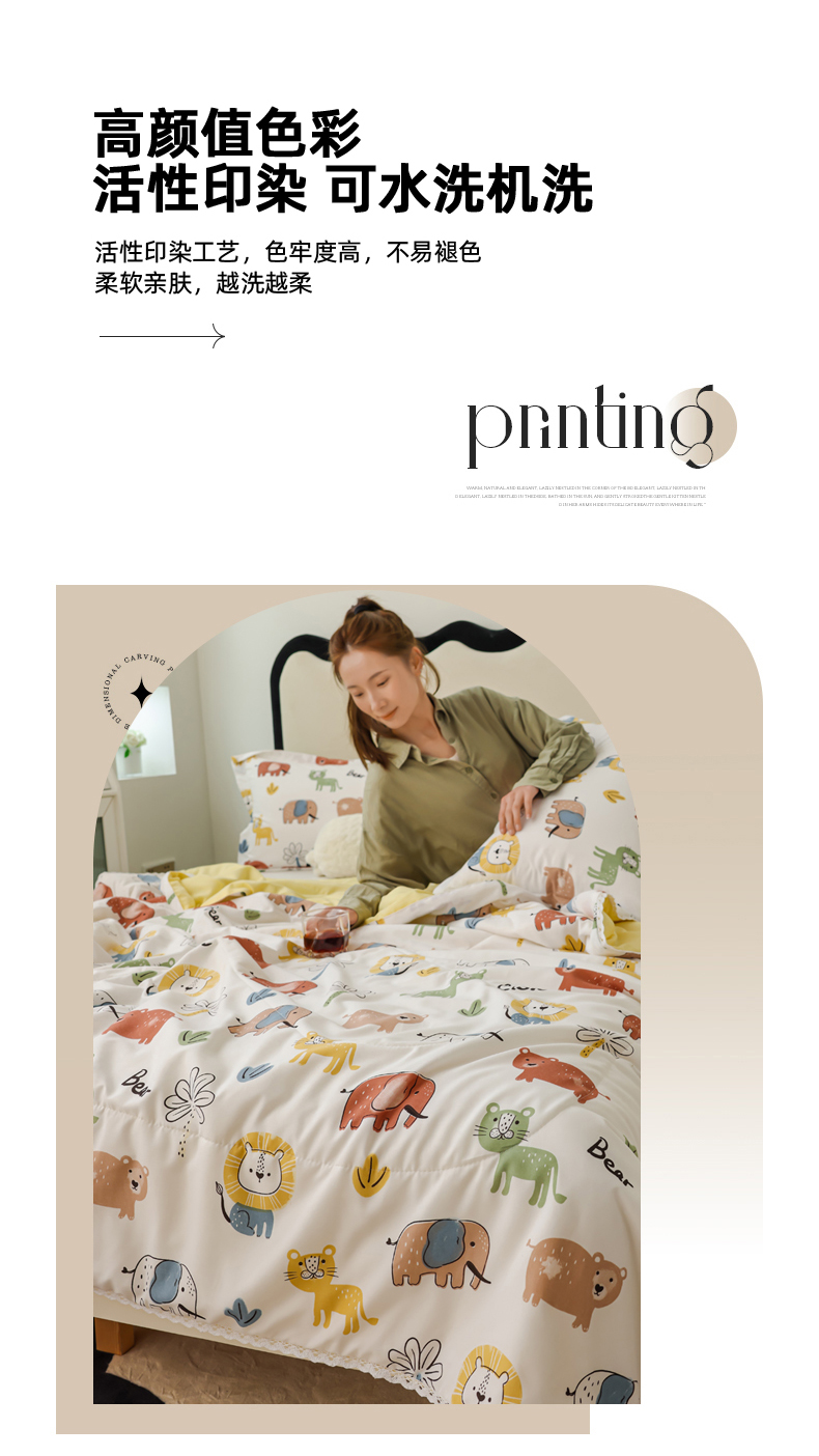 (总)鑫贝阳 2025新款亲肤水洗棉小花边印花夏被,动物乐园,爱心笑脸,花海,花漫,萝卜兔,夏花,小草莓,蘑菇森林,绚熊,小恐龙,星空粉