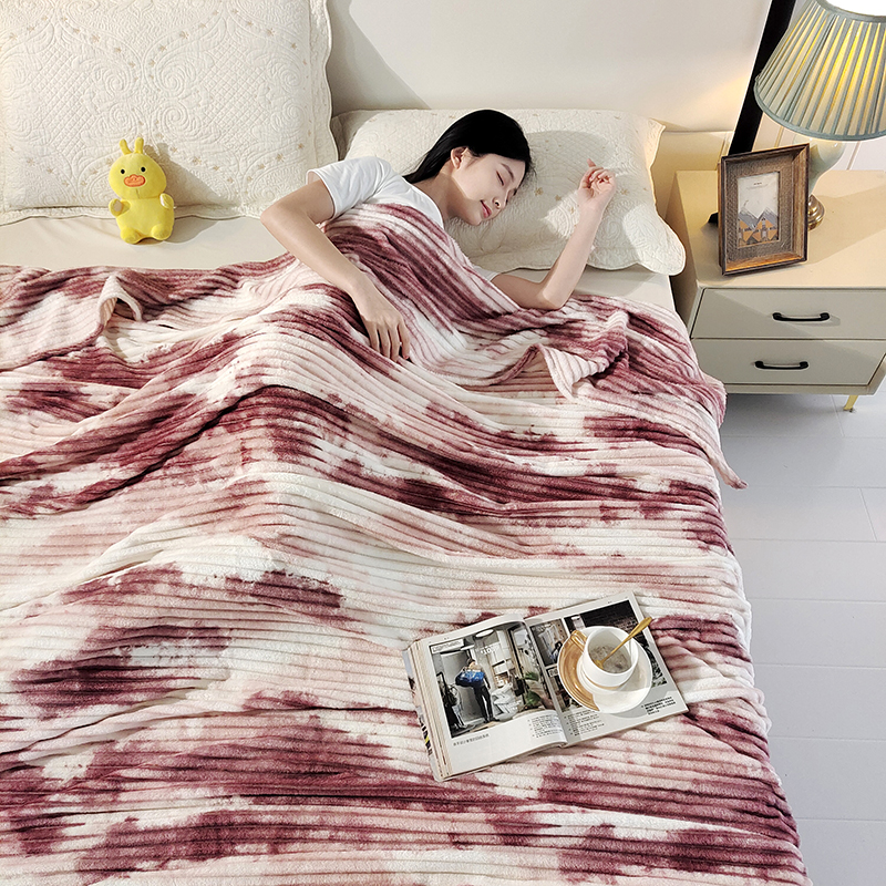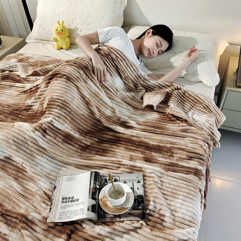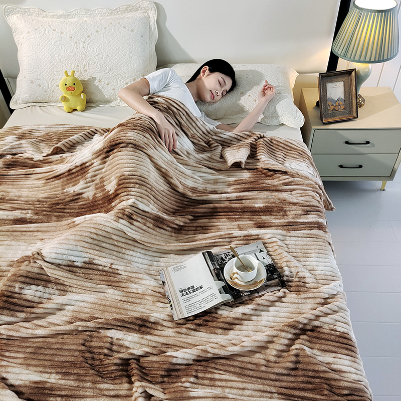 (总)巴木赫2025新款200g水墨印染抽条毛毯毯子