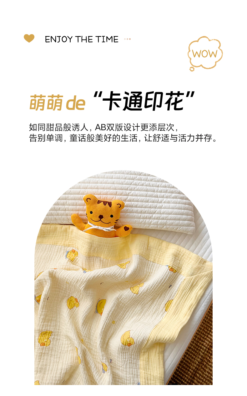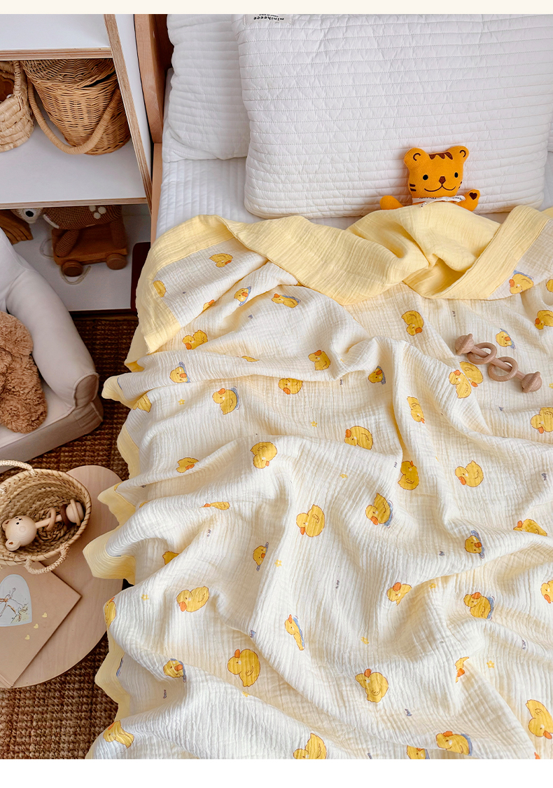 BOSS 2025新款全棉纯棉皱皱纱儿童盖毯夏被 幼儿园夏被夏凉被空调被 柠檬鸭