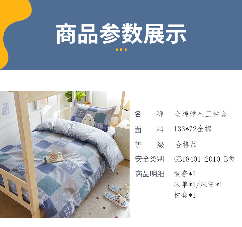 商品名称:鑫宇2025新款13372全棉学生宿舍上下铺三件套床单款床笠款可定制 邦尼熊-灰