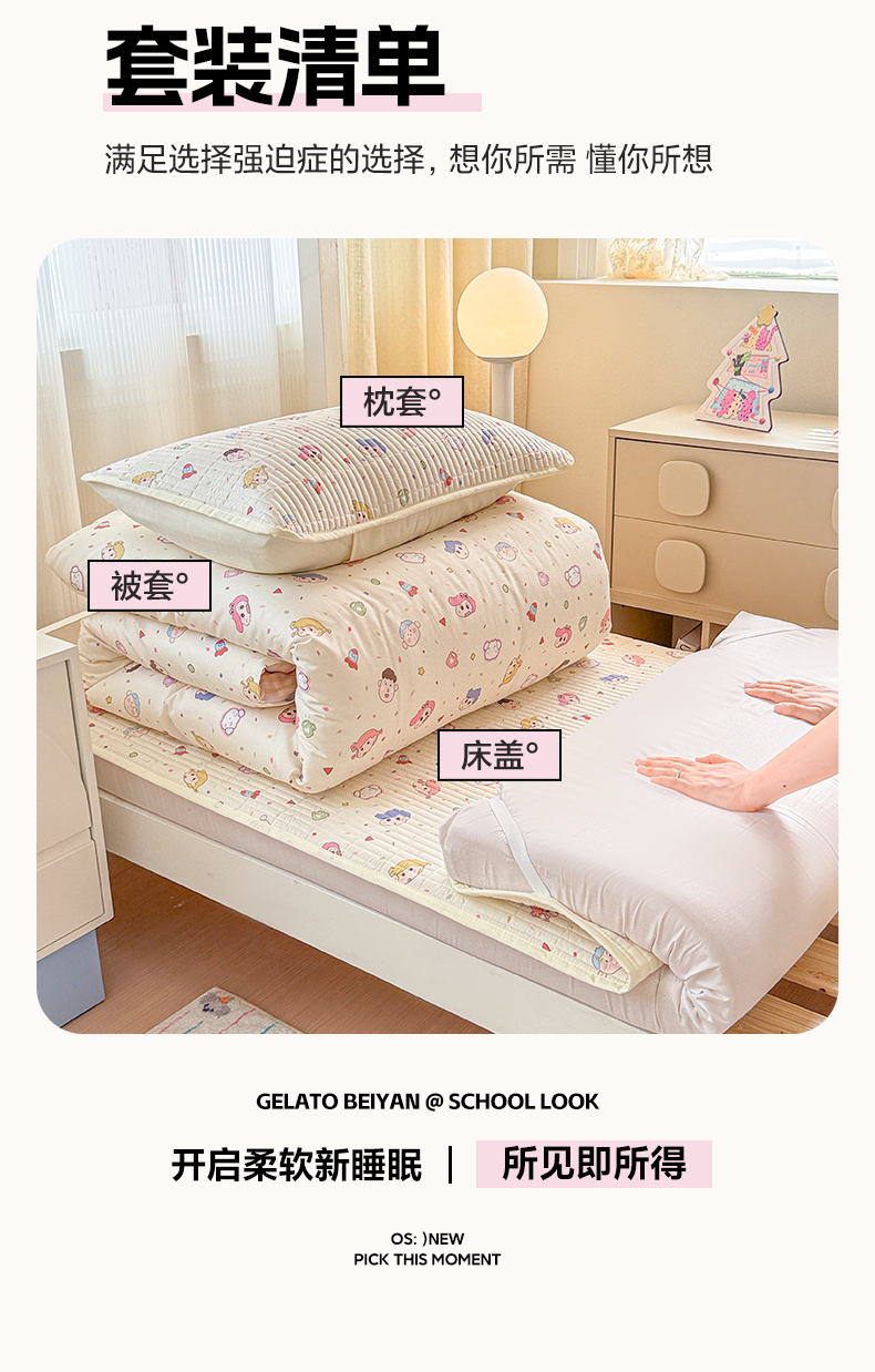 当前位置: 91家纺网 > 商品网购 > 床品套件 > 三件套 > 沐辰 2025春夏新款A类全棉纯棉学生床床盖三件套 幼稚园