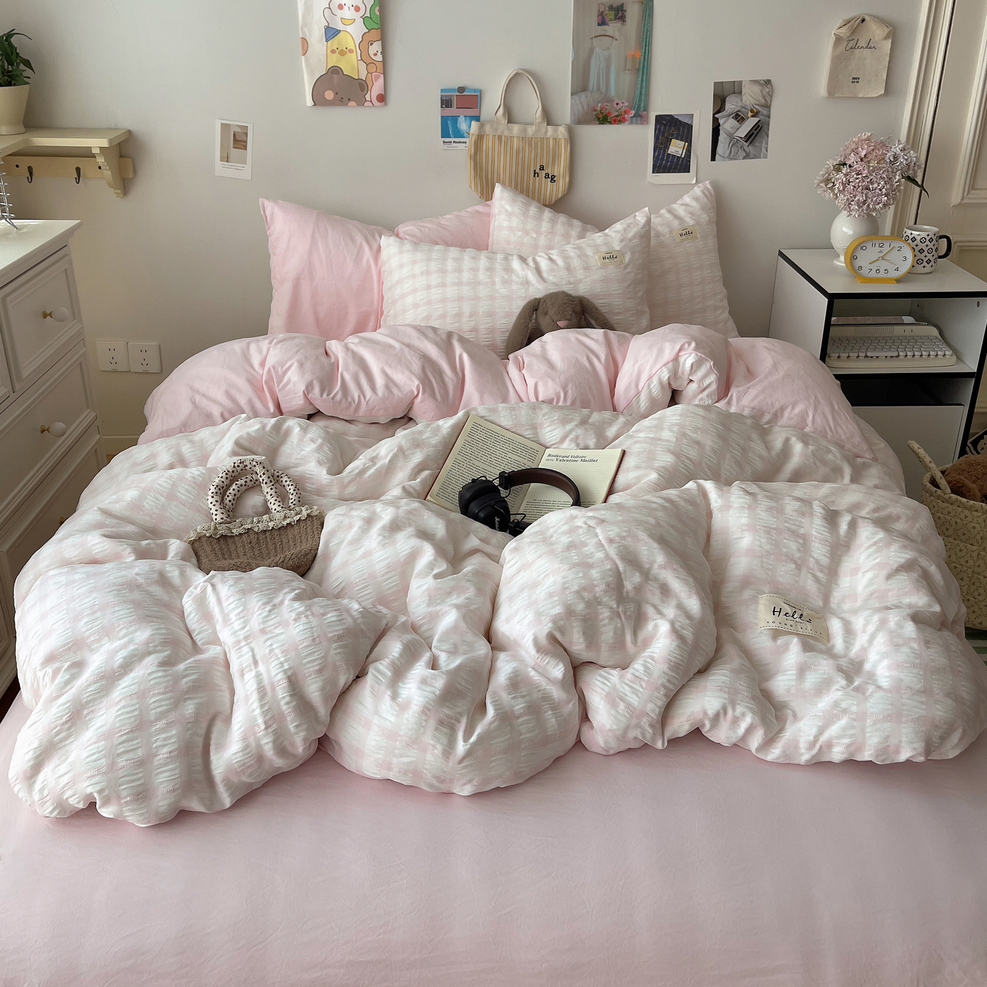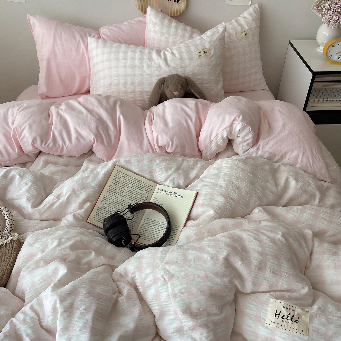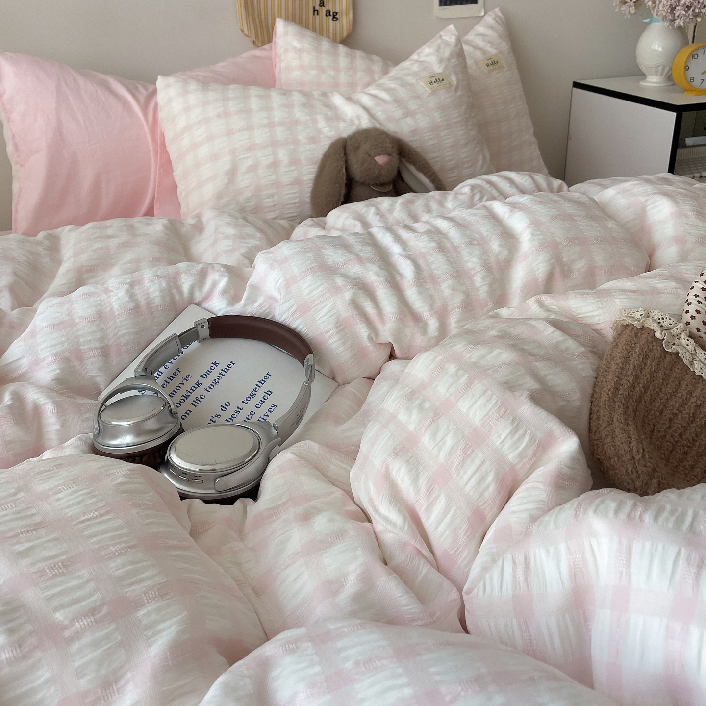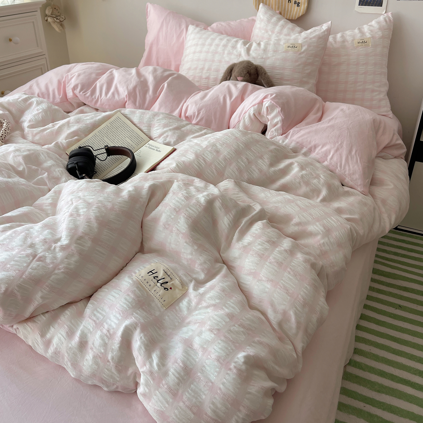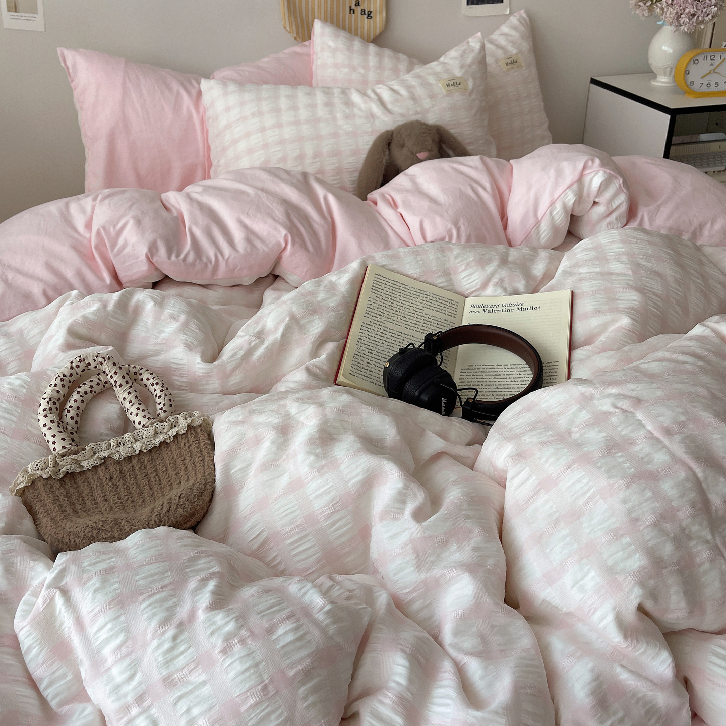 当前位置: 91家纺网 > 商品网购 > 床品套件 > 四件套 > 双层纱四件套 > 顾里2025新款韩系格子阳离子泡泡纱四件套-第二组 少女粉格