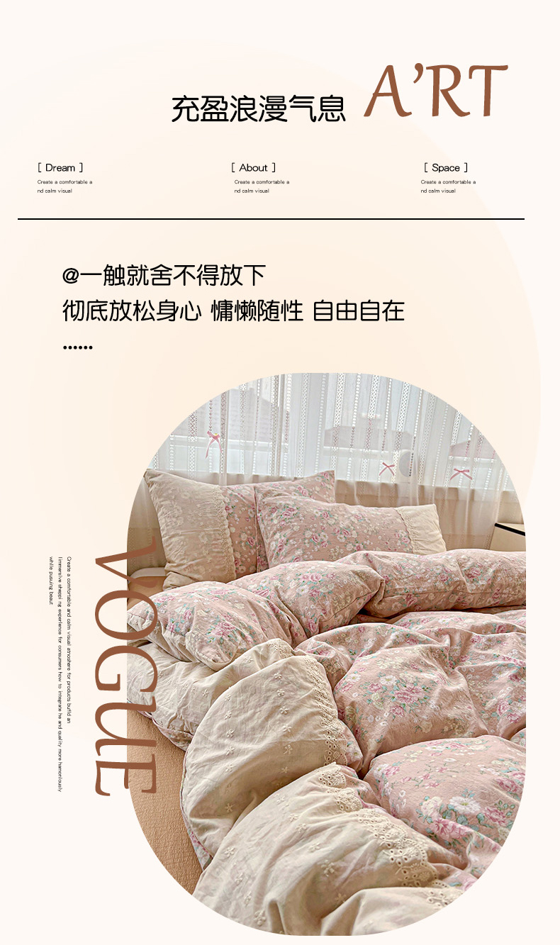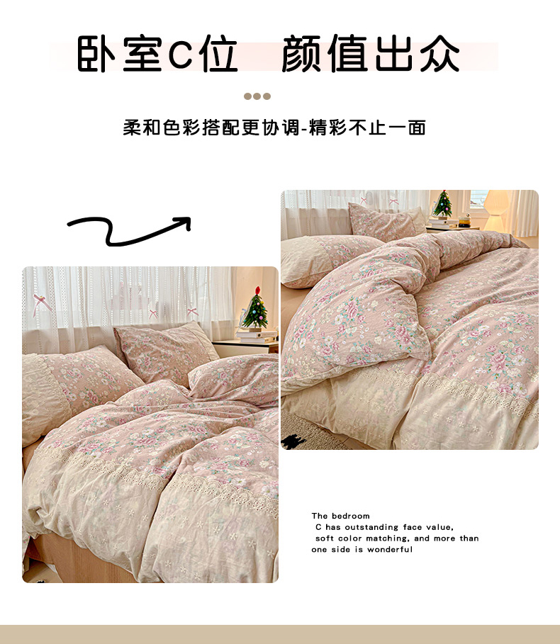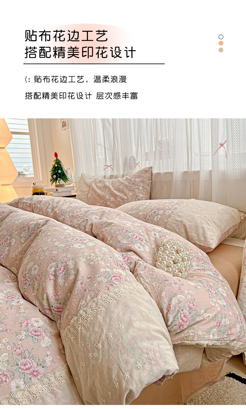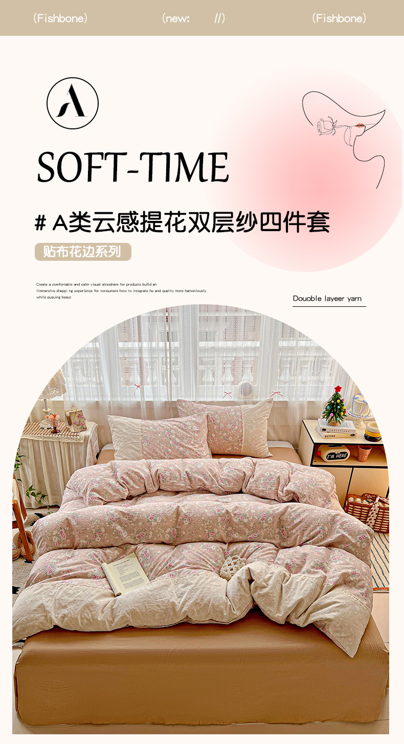 当前位置: 91家纺网 > 商品网购 > 床品套件 > 四件套 > 双层纱四件套 > 喜颜 2025新款云感木棉双层纱贴布花边爆款四件套 漫花田-(贴布花边)