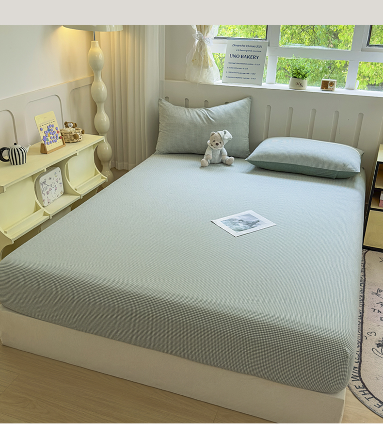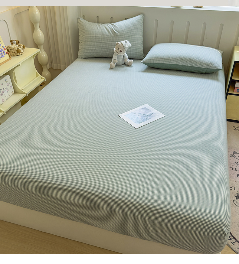 晚依家纺 2025新款A类色织全棉纯棉水洗棉床笠单件纯棉格子纯色学生宿舍定制定做 密格-草绿