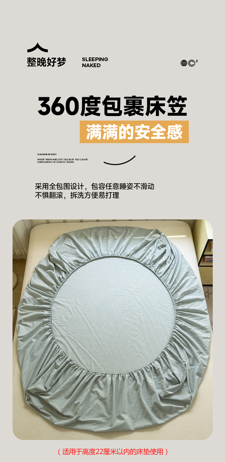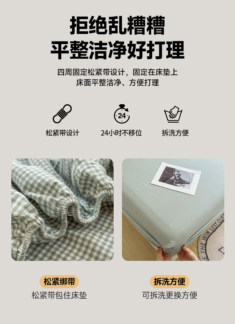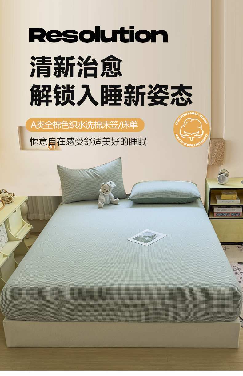 • 91家纺网 家纺一手货源 找家纺 晚依家纺 2025新款A类色织全棉纯棉水洗棉床笠单件纯棉格子纯色学生宿舍定制定做 密格-草绿