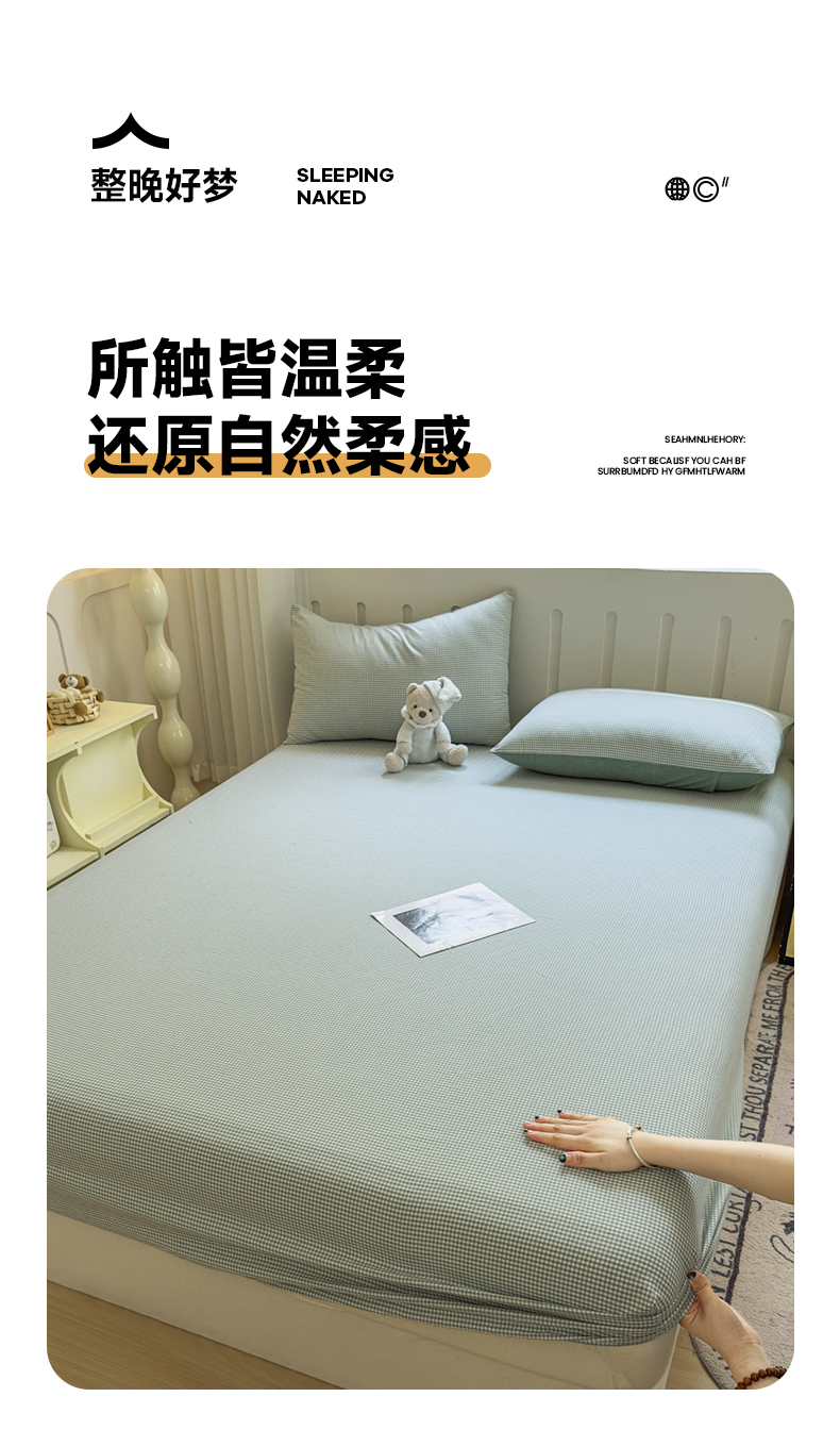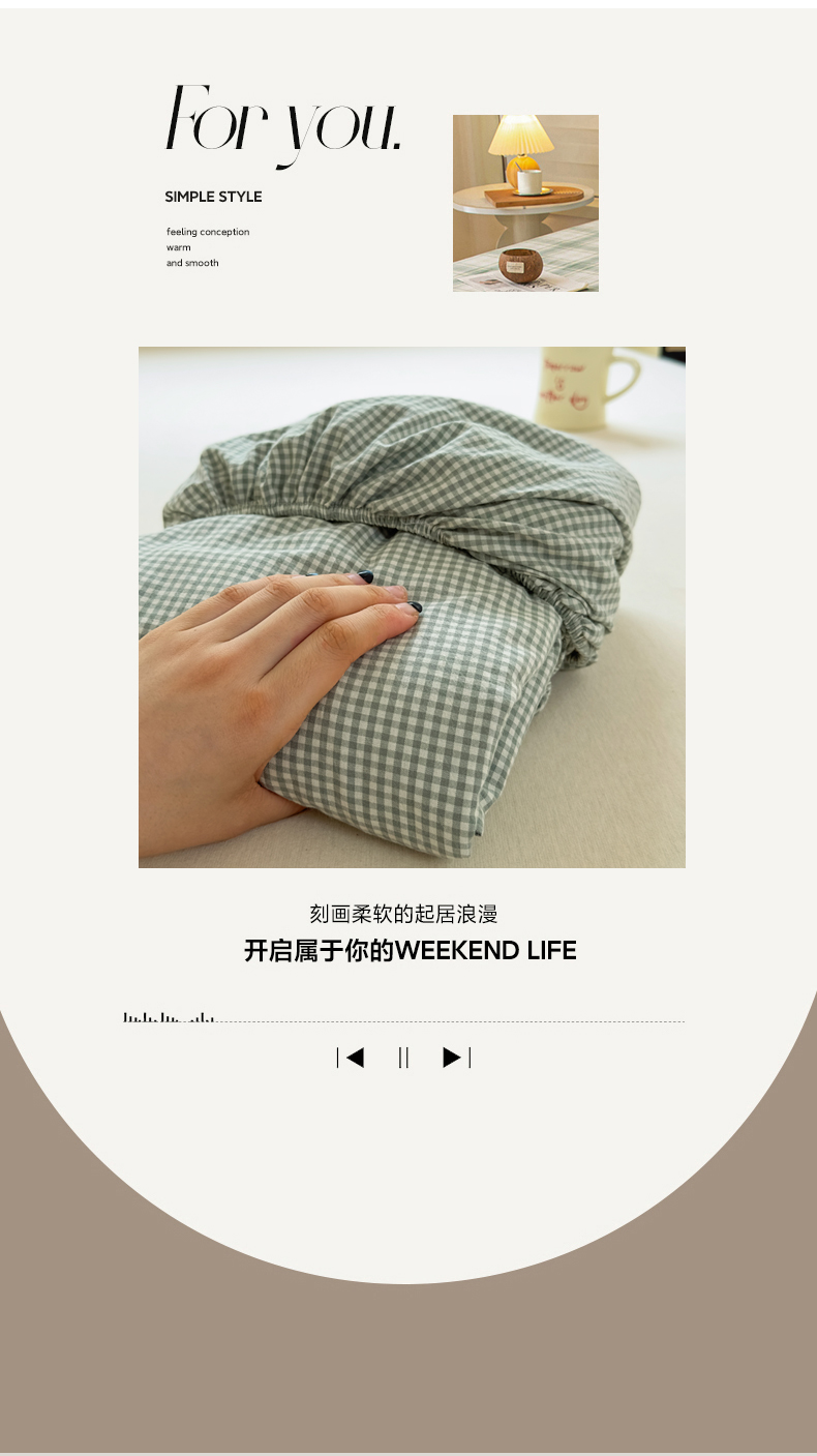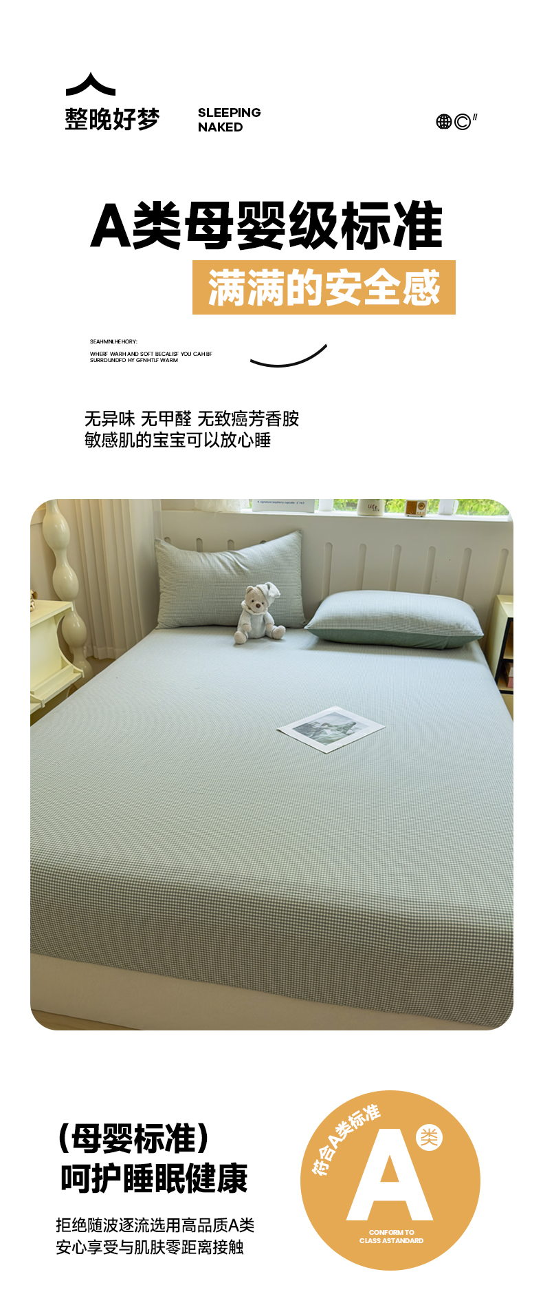 • 91家纺网 家纺一手货源 找家纺 晚依家纺 2025新款A类色织全棉纯棉水洗棉床笠单件纯棉格子纯色学生宿舍定制定做 密格-草绿