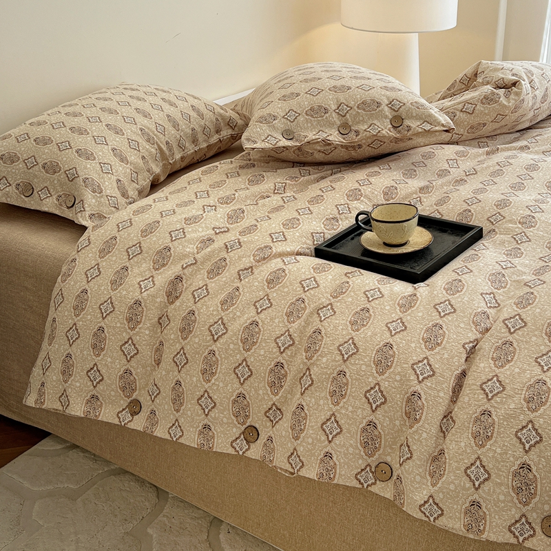 商品名称:仟网汇 2025新款亚麻纽扣款四件套 时光里