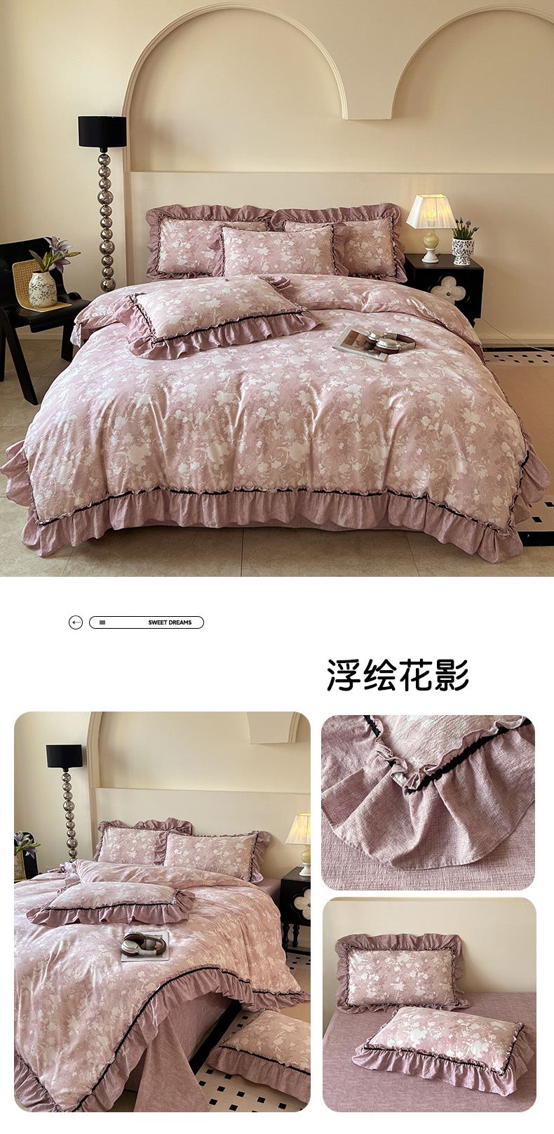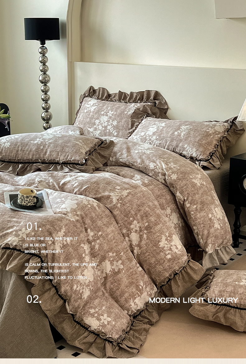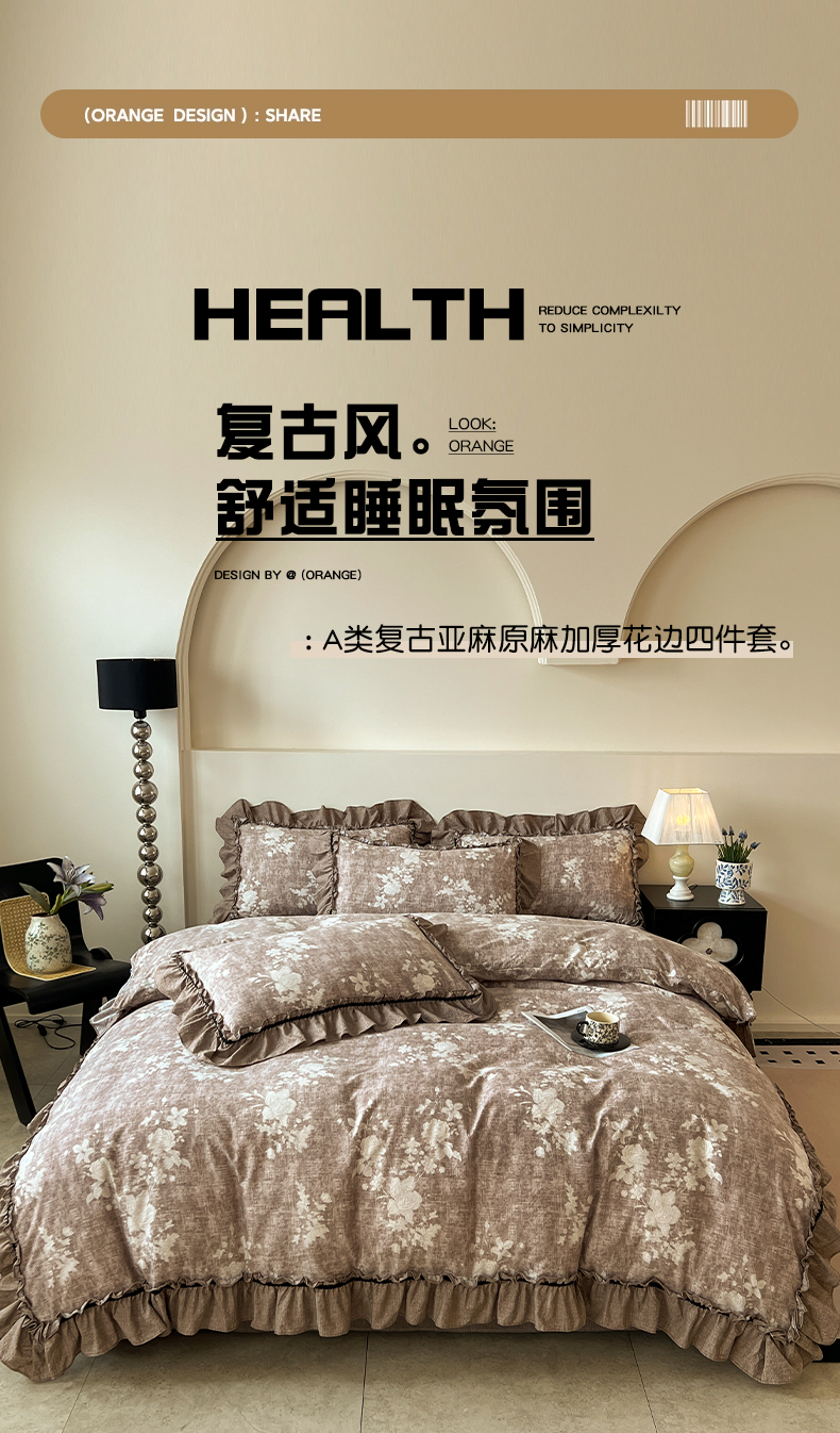 当前位置: 91家纺网 > 商品网购 > 床品套件 > 四件套 > 其它四件套 > 喜颜 2025新款亚麻爆款花边四件套-直播热款 疏影