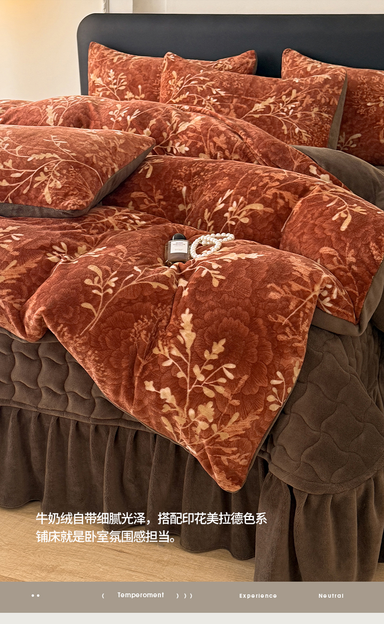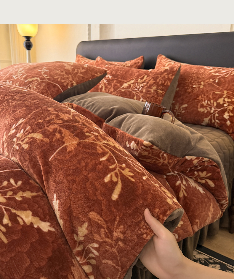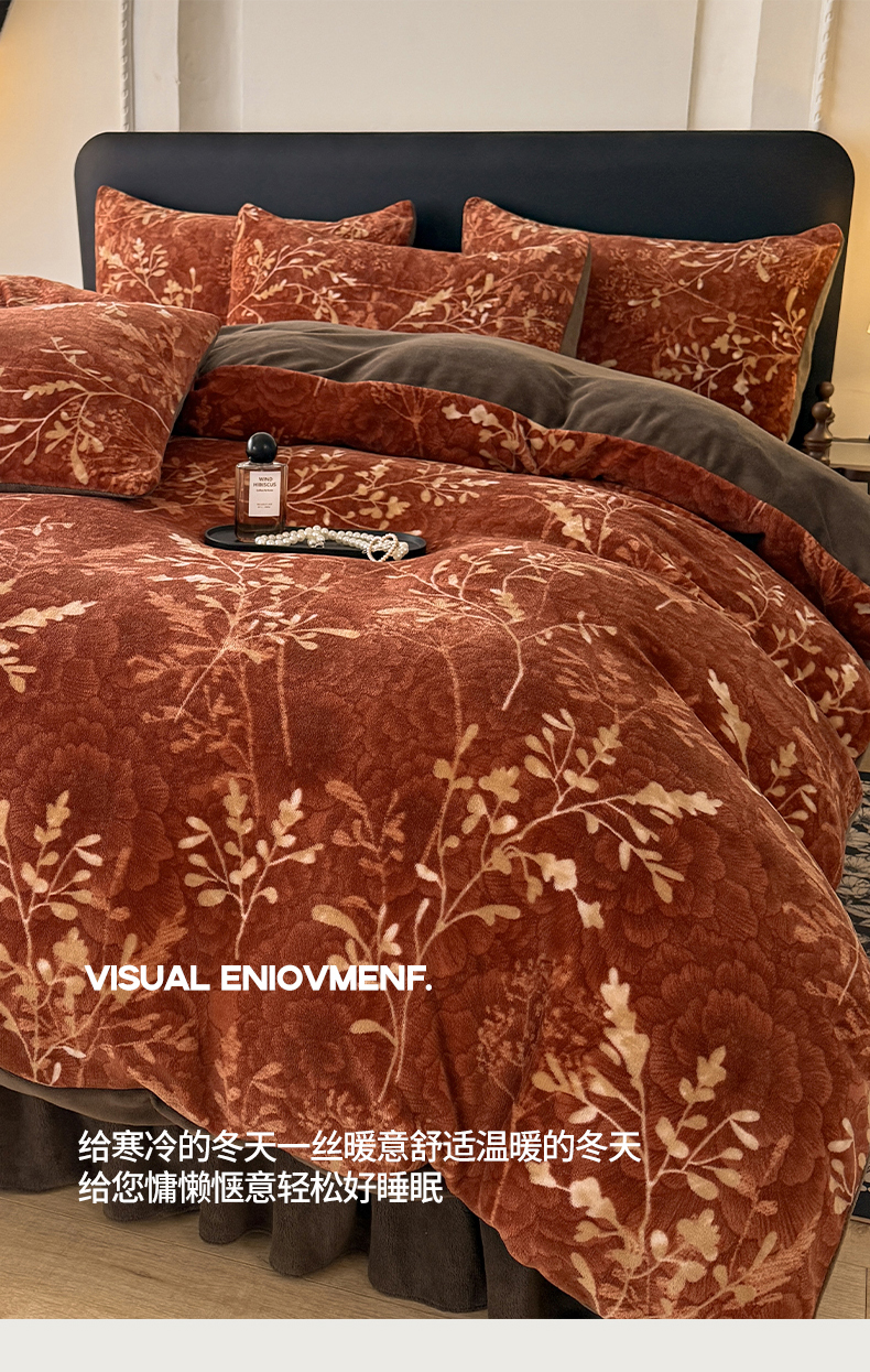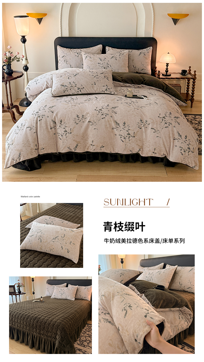 当前位置: 91家纺网 > 商品网购 > 床品套件 > 四件套 > 其它四件套 > 金盛皇朝家纺 2025新款高克重美拉德牛奶绒床单床盖单件三件四件套 暖阳缀枝