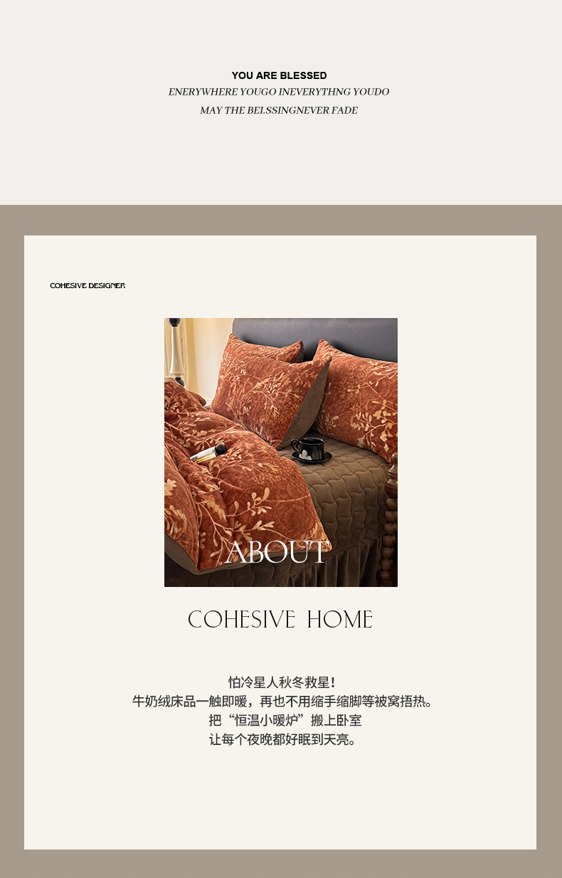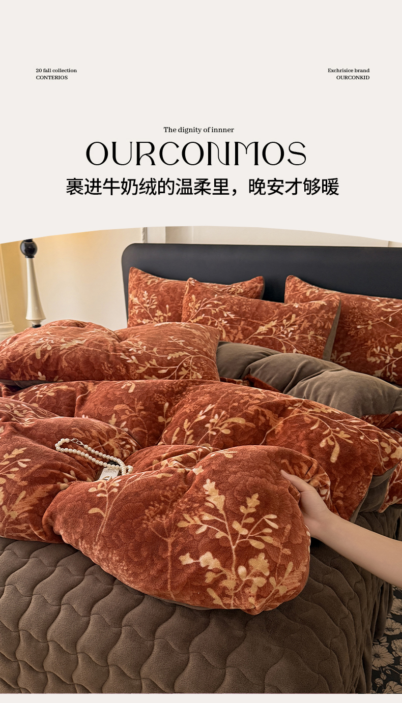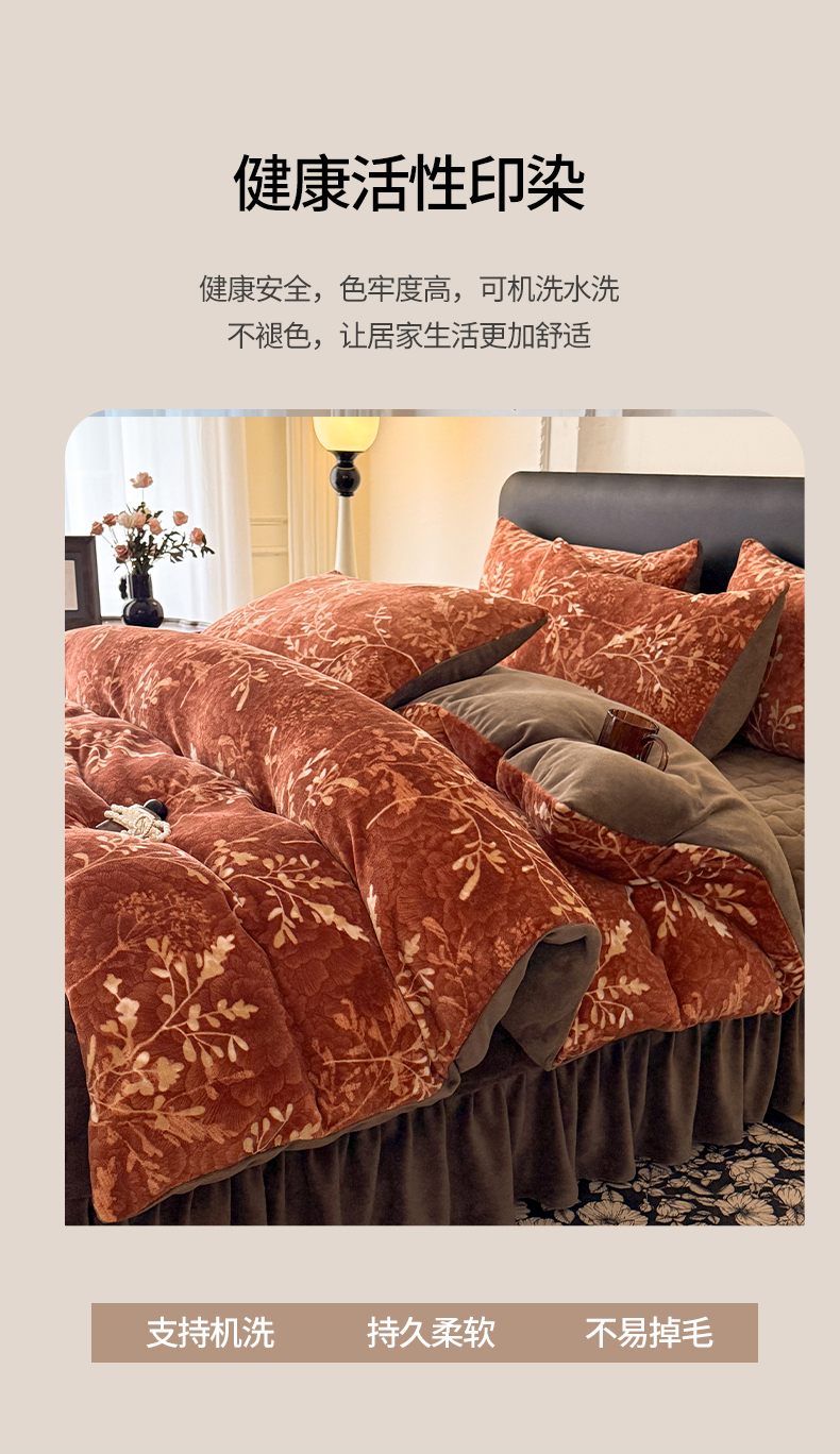 当前位置: 91家纺网 > 商品网购 > 床品套件 > 四件套 > 其它四件套 > 金盛皇朝家纺 2025新款高克重美拉德牛奶绒床单床盖单件三件四件套 暖阳缀枝