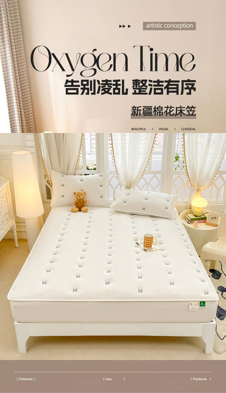 (总)安逸恋 2025新款简约新疆棉花单床笠床笠单件单品床笠,果绿,卡其,奶白,深蓝,烟灰,玉色