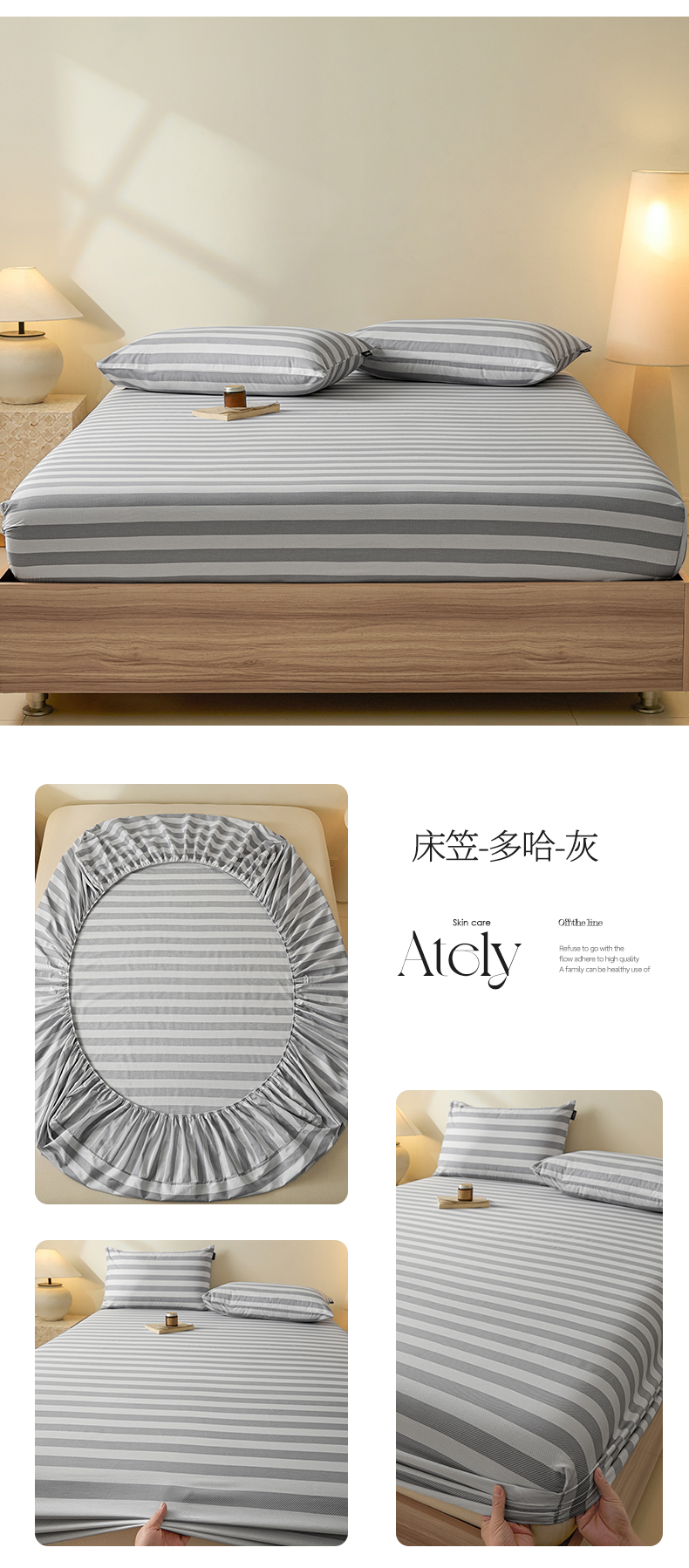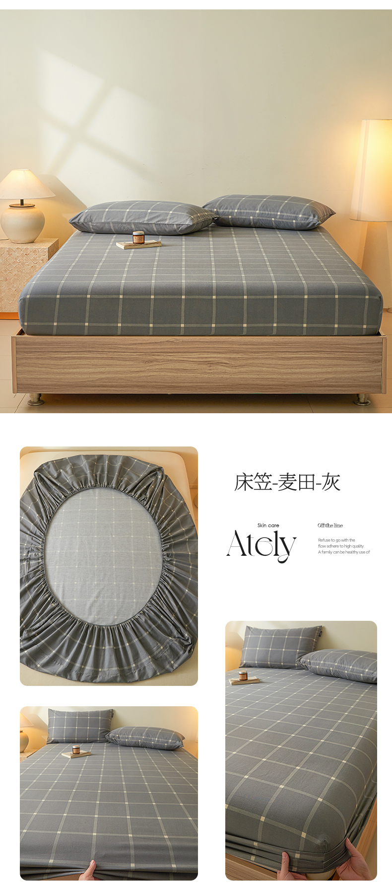 涵宸家纺 2026新款全棉印花单床笠-良品 床笠-云纹-深灰