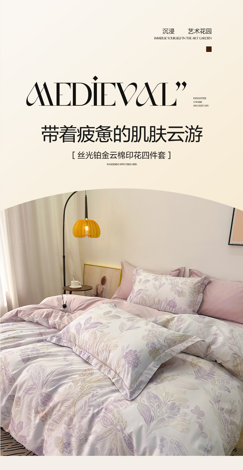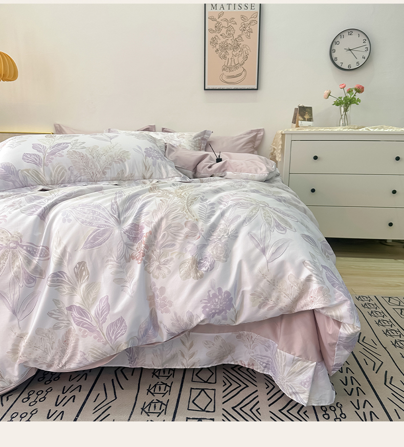 商品名称:橙艺家居 2026新款丝光铂金云棉印花四件套 本店线上严格控价,券后、活动后标准不得低于218元,以此类推。请各位老爷严格遵守,以免低价后再调整价格,影响链接权重 花朝拾露-紫