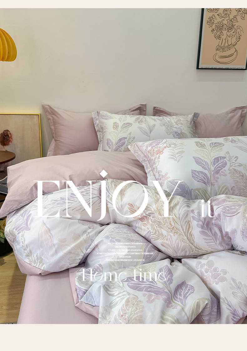 (总)橙艺家居 2026新款丝光铂金云棉印花四件套 本店线上严格控价,券后、活动后标准不得低于218元,以此类推。请各位老爷严格遵守,以免低价后再调整价格,影响链接权重,花朝拾露-紫,花田诗梦-粉,花颜外-粉,蔓月-紫,梦叶集-粉,慕枝下-绿,千叶密语-粉,闻栖-绿,雅莹-绿,叶间绒雪-兰,叶木槿-米,予她-粉,自然低语-绿,芙晚,奈亚,婉情-灰