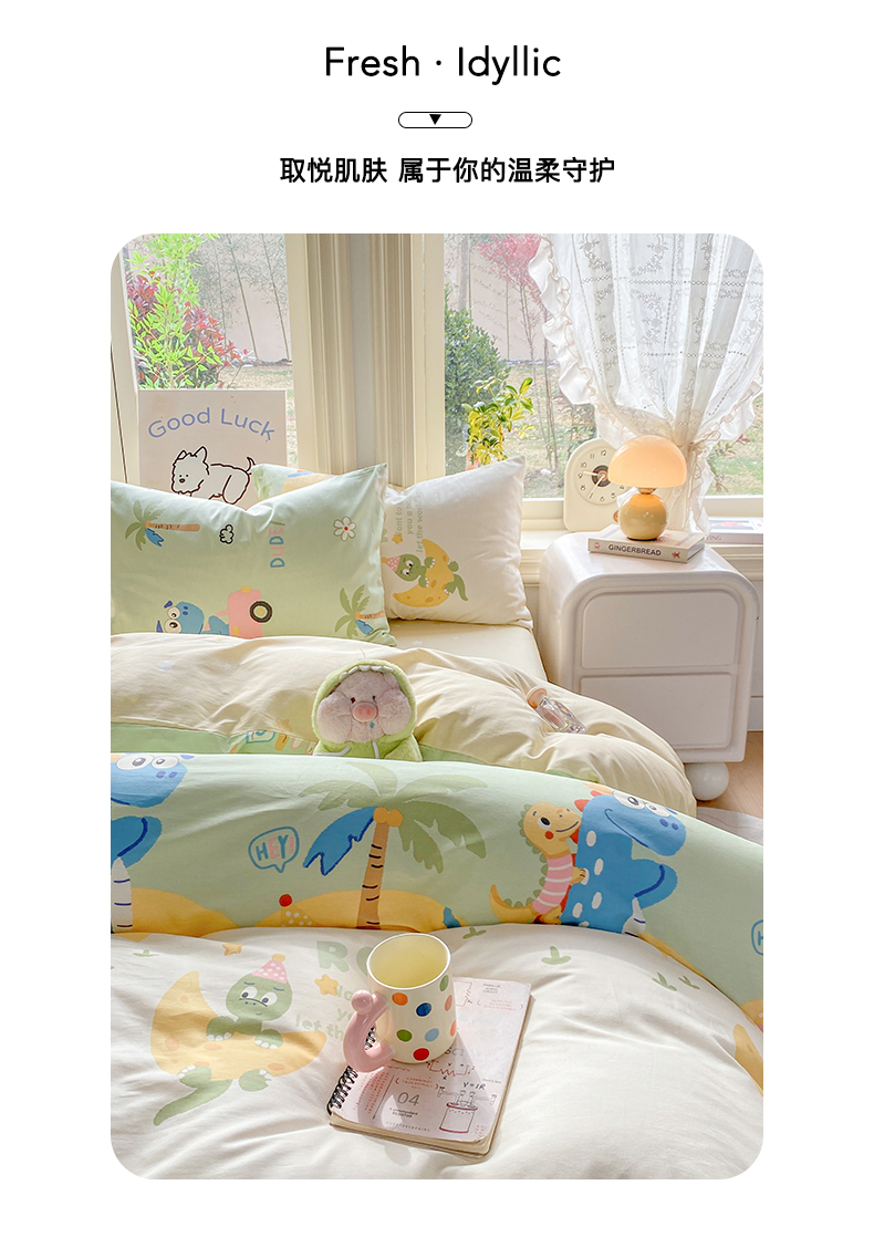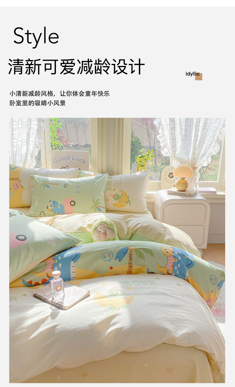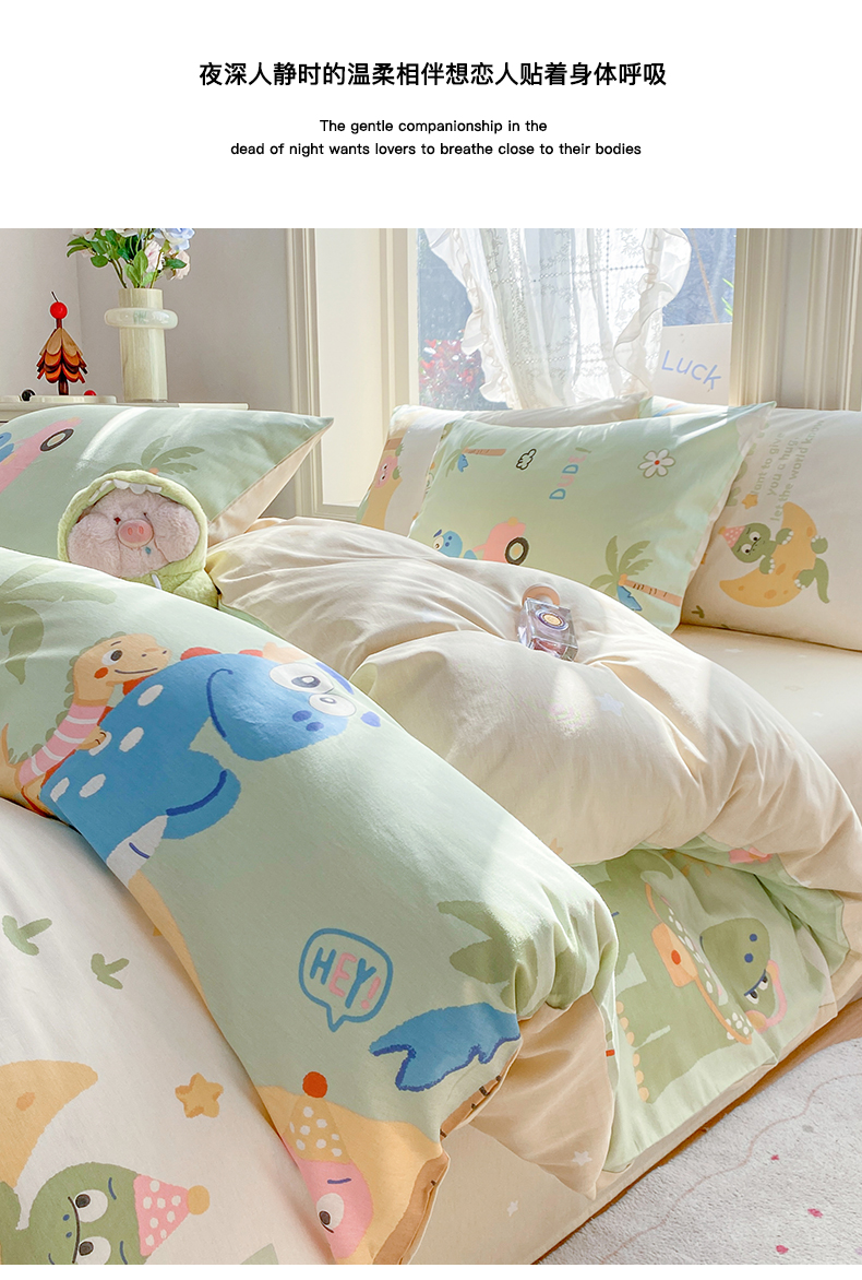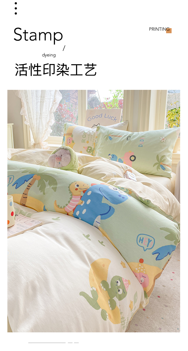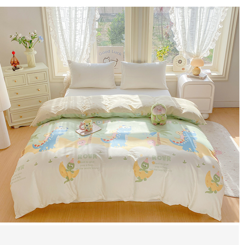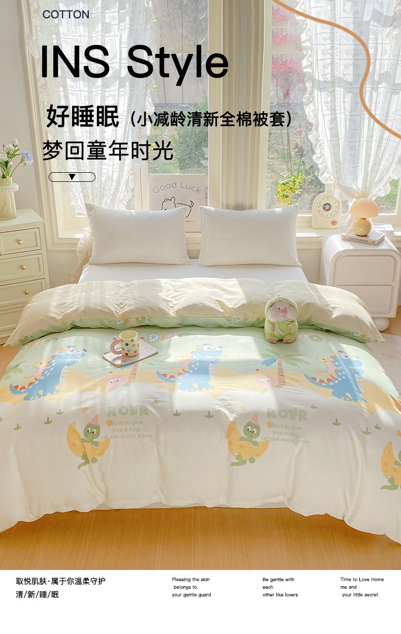 商品名称:黑马家居 2026新款13070全棉印花小清新卡通花卉单品被套系列 恐龙派对
