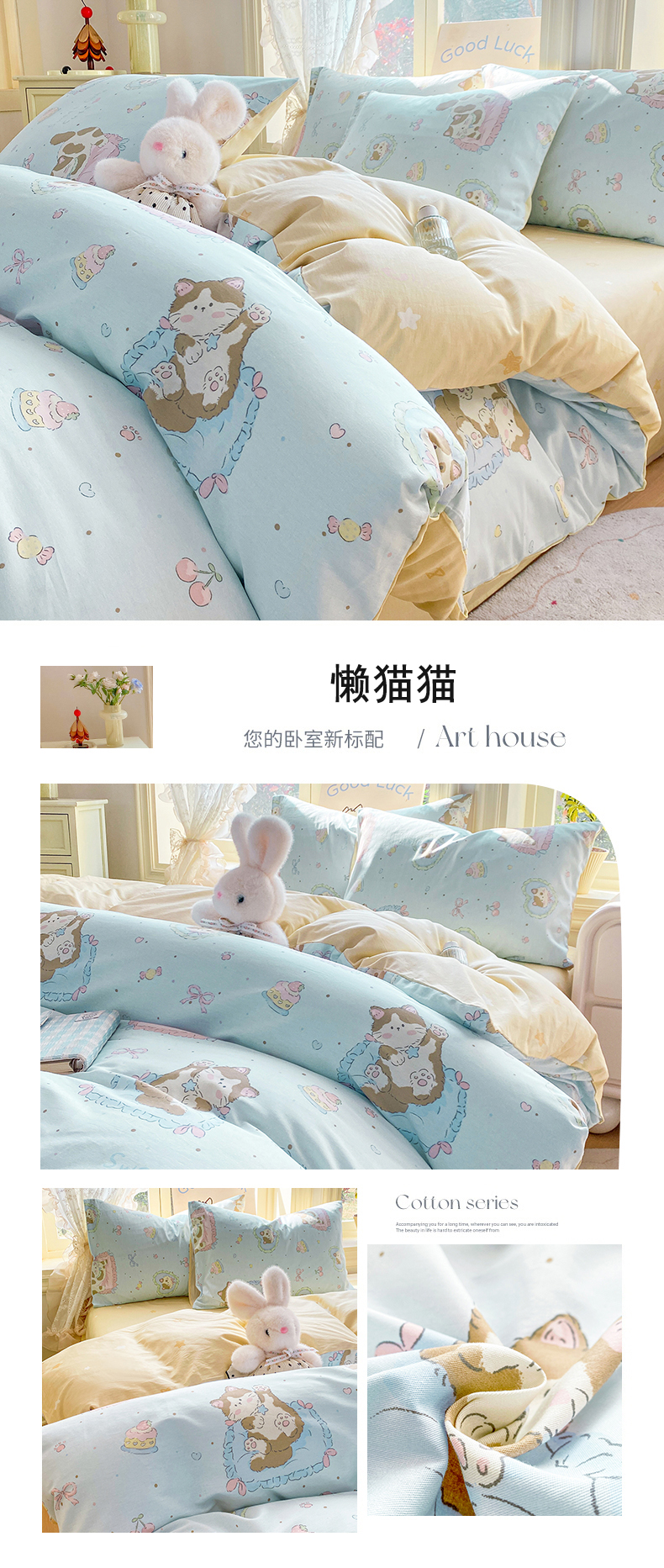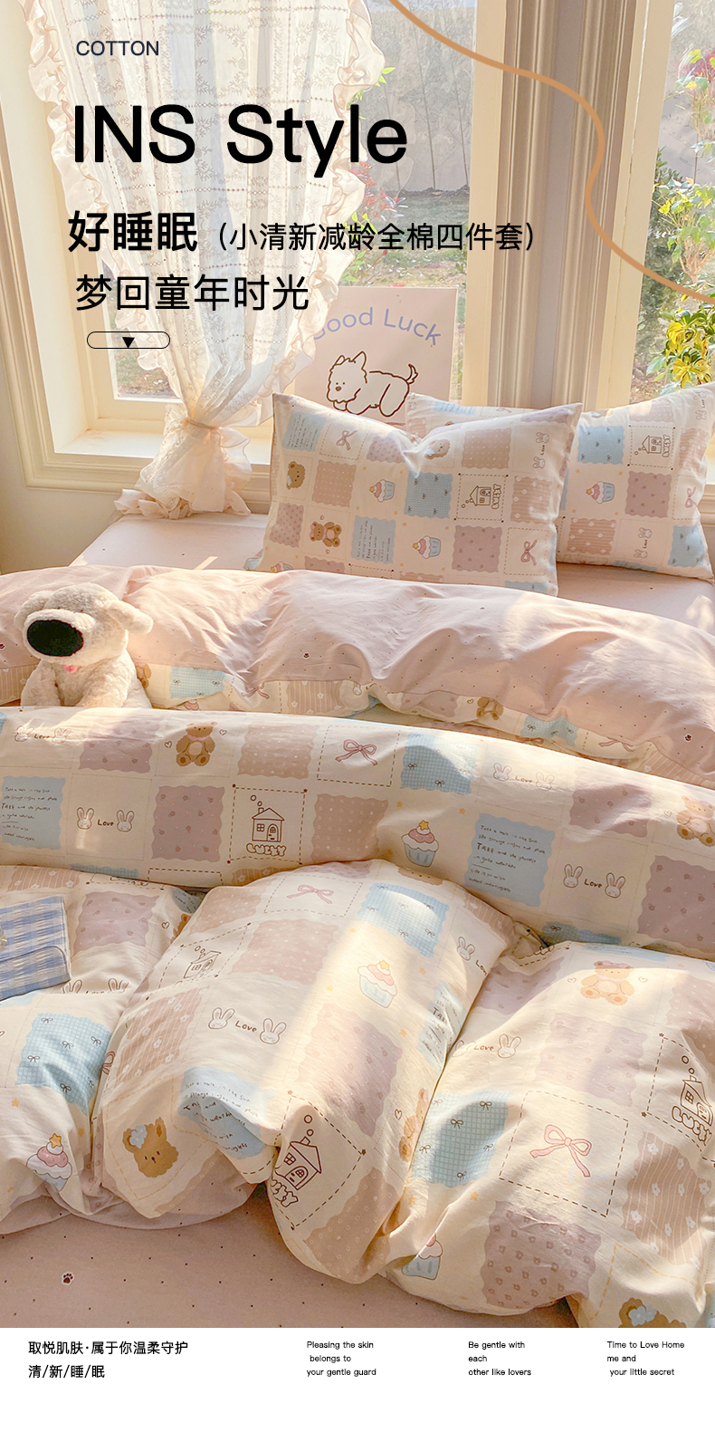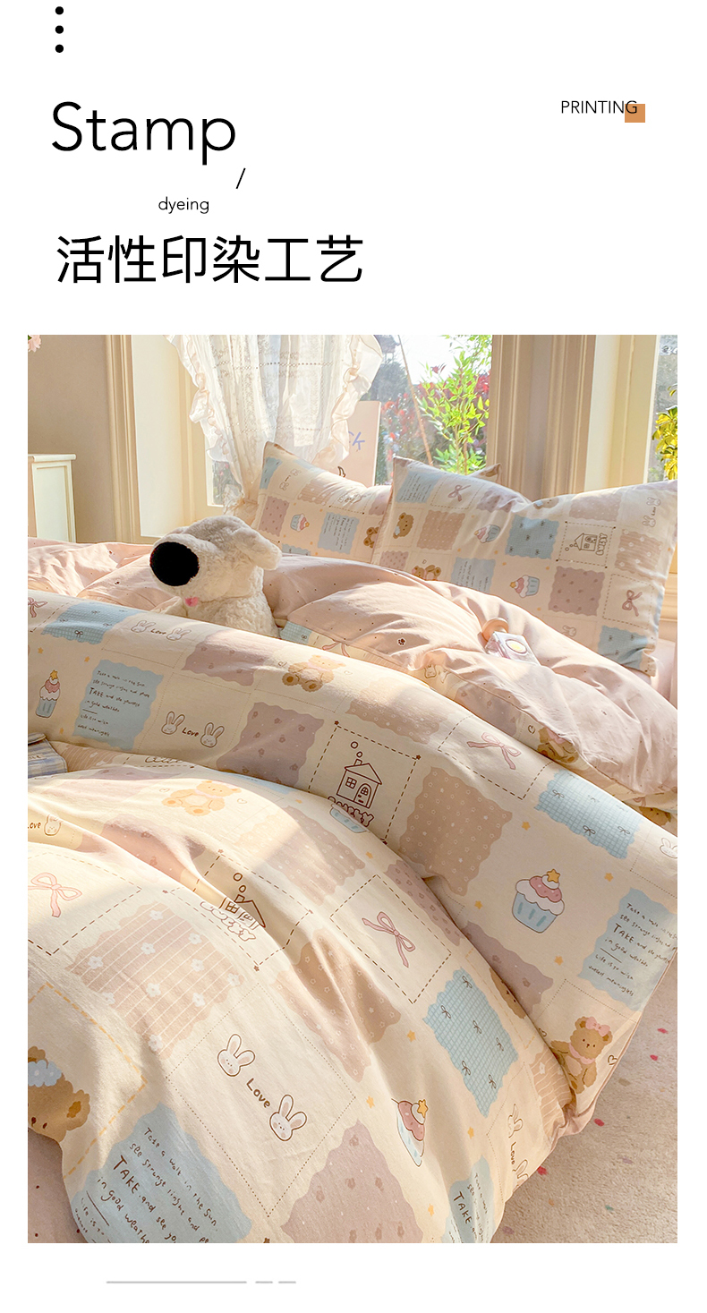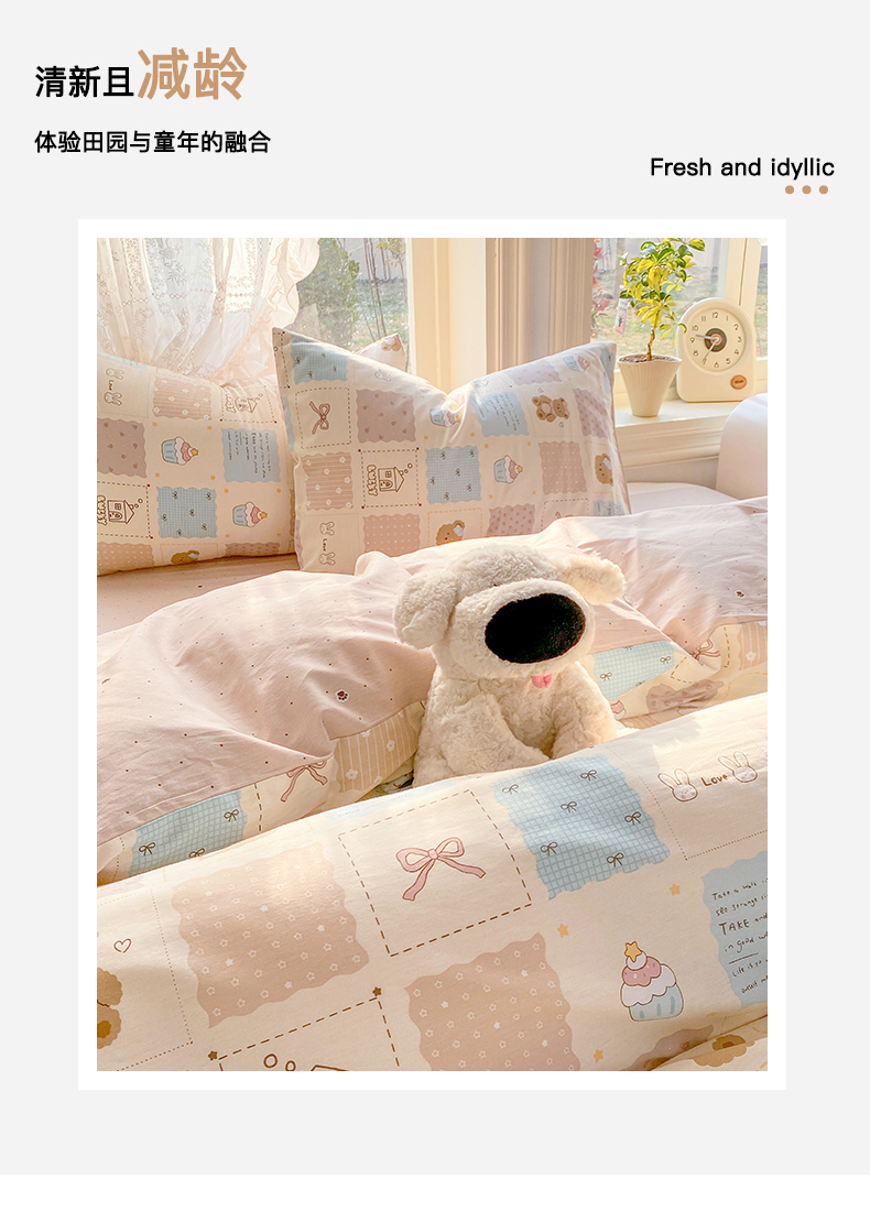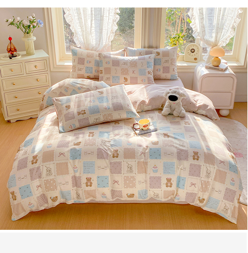 当前位置: 91家纺网 > 商品网购 > 床品套件 > 四件套 > 全棉普通四件套 > 黑马家居 2026新款13070全棉印花小清新卡通花卉四件套系列 饼干熊