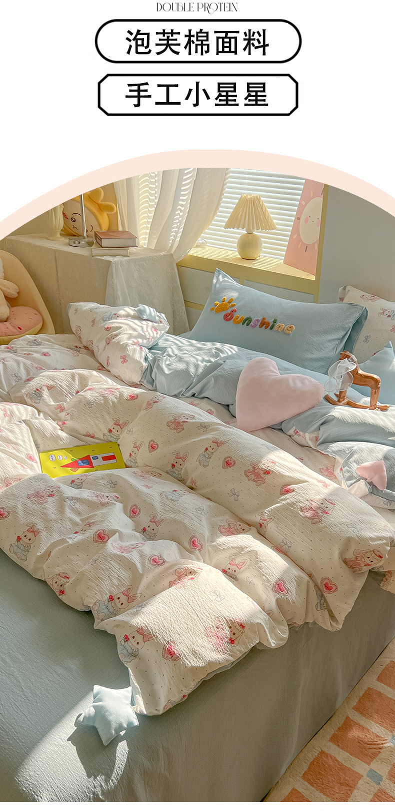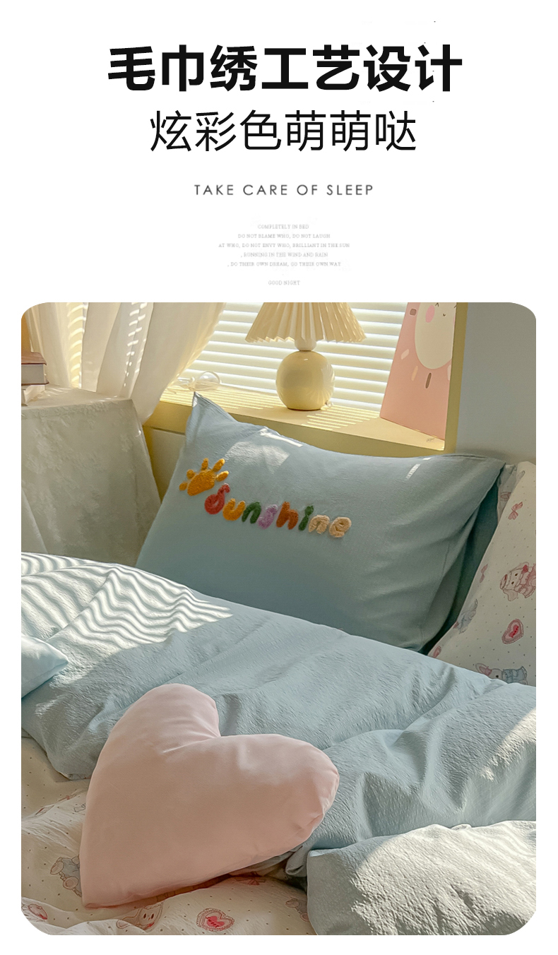 商品名称:子钦家纺 2026春夏新款提花泡芙棉可爱小清新手工爱心小星星系列床单床笠四件套-流星花园 流星花园-洛丽塔