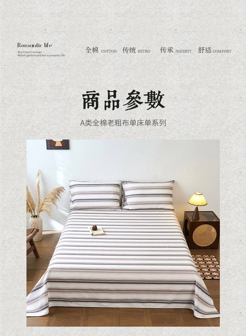 春皖家纺 2026春夏新品简约款老粗布系列床单单品床单床单单件 星纬
