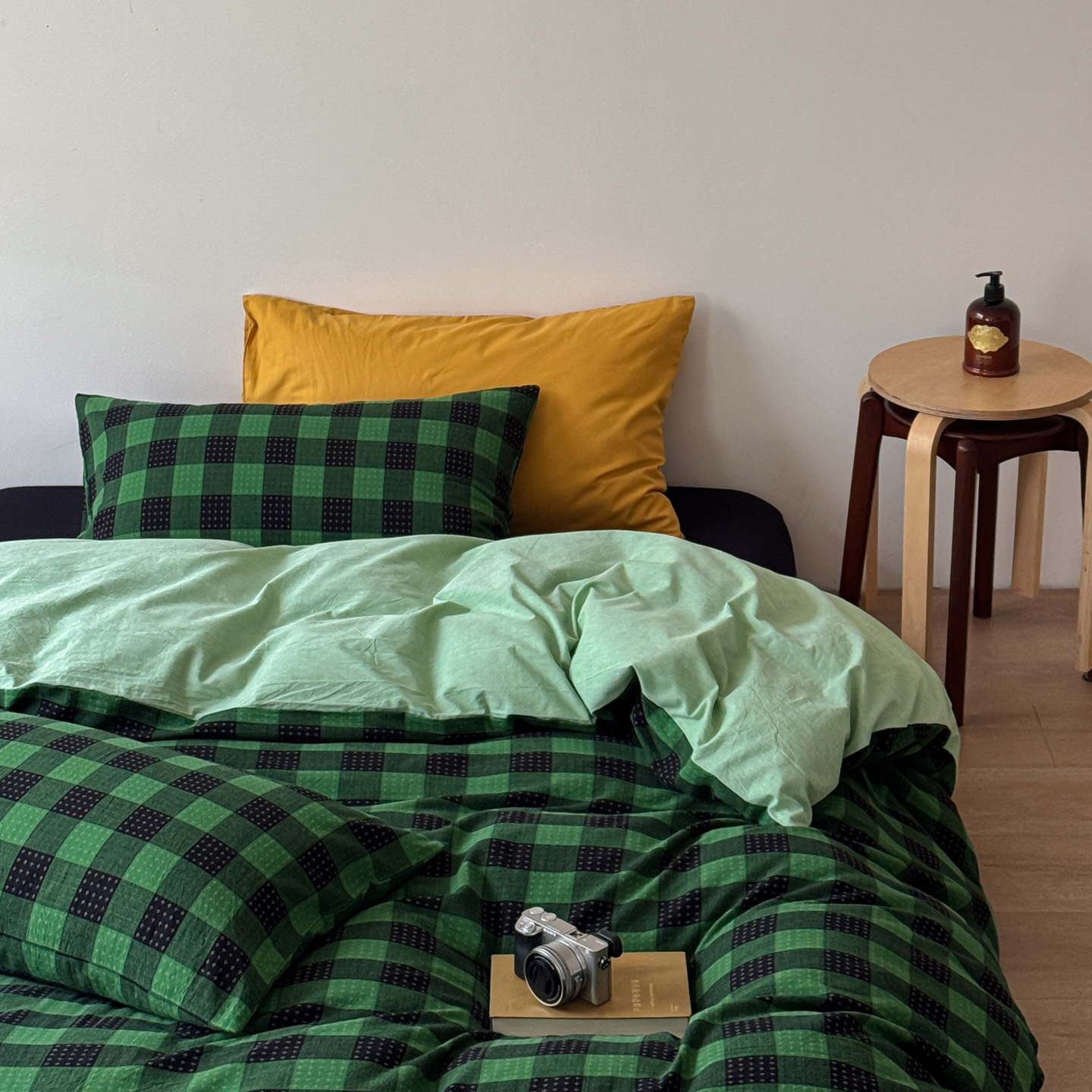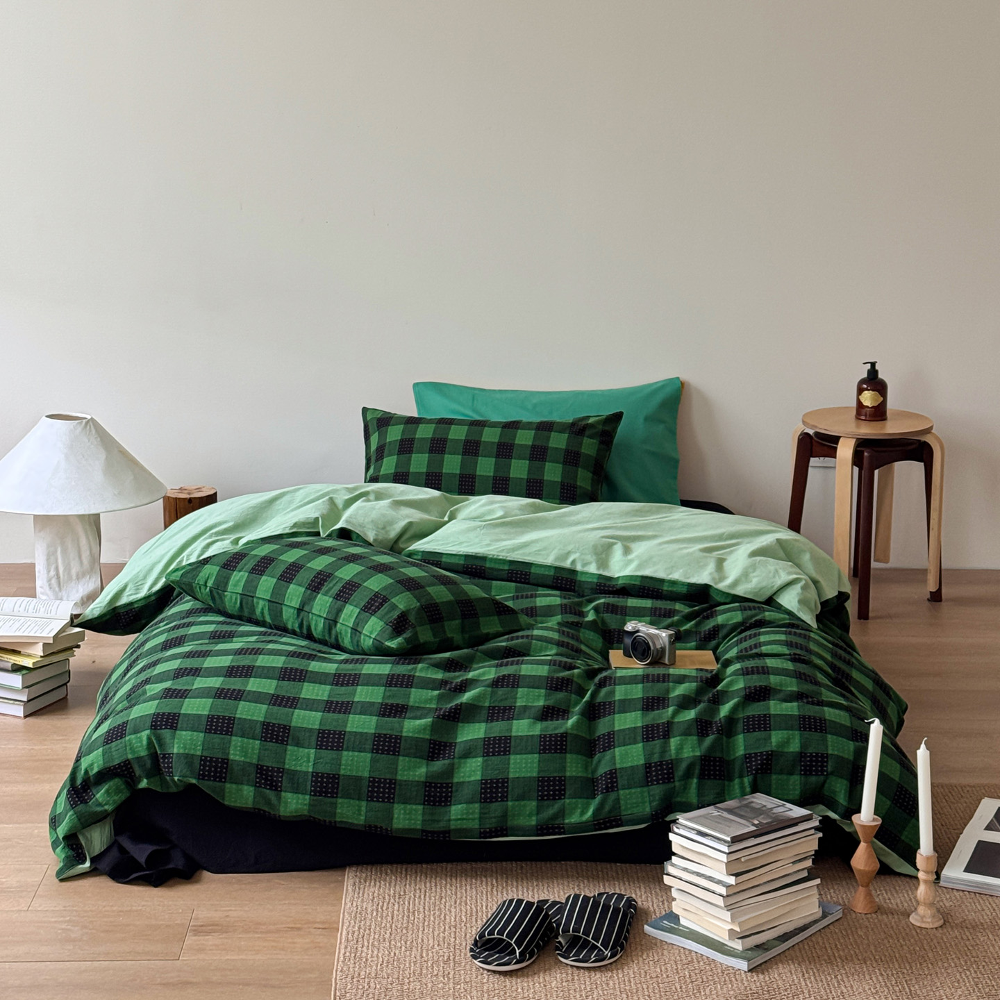 当前位置: 91家纺网 > 商品网购 > 床品套件 > 四件套 > 全棉普通四件套 > 艾沁家纺 2026新款复古风全棉色织水洗提花四件套 绿黑棋盘格十字提花-枕套绿格+黑