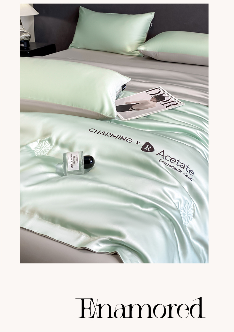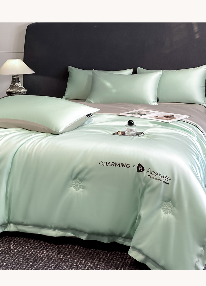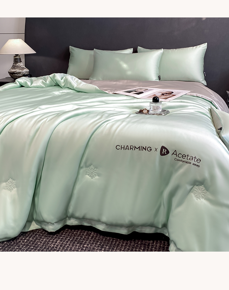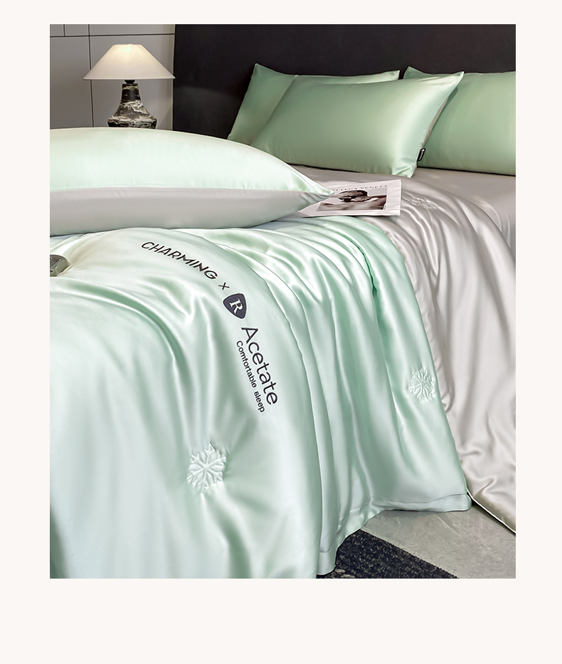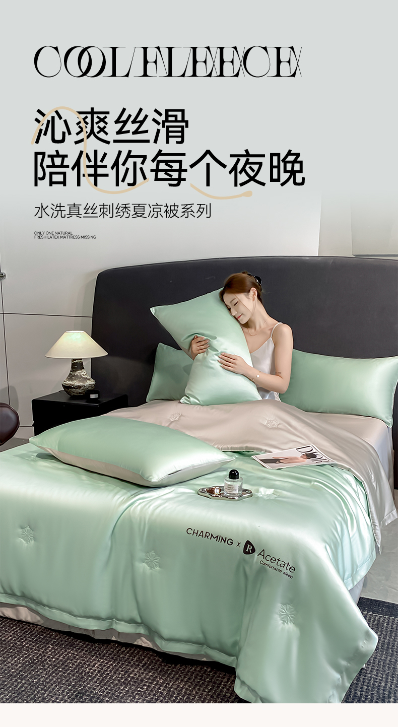 • 91家纺网 家纺一手货源 找家纺 无界 2026新款水洗真丝夏被-雪花绗缝压线-莱拉 莱拉 亚丁绿+冰川灰