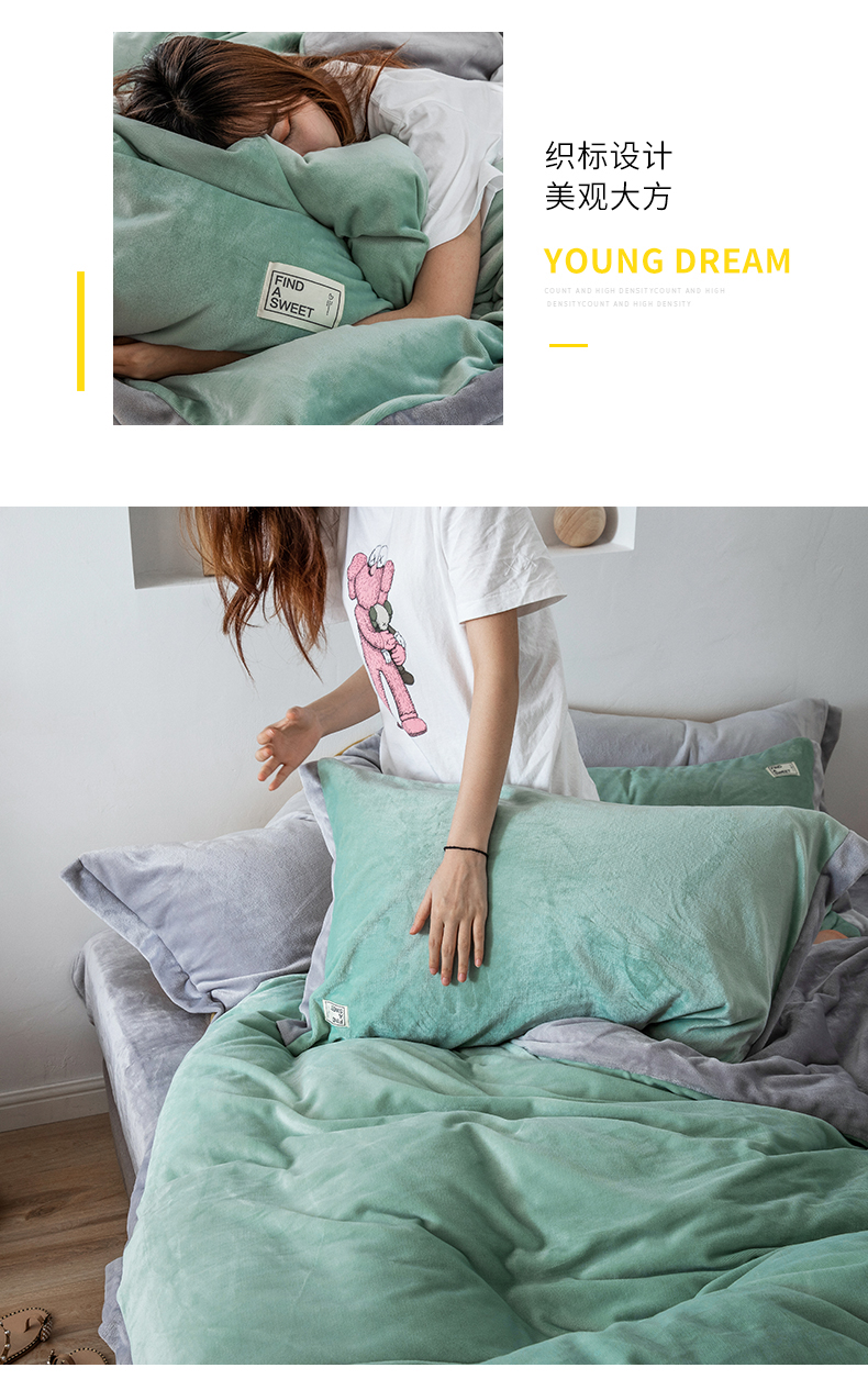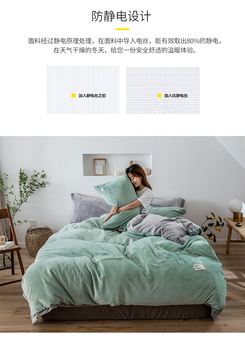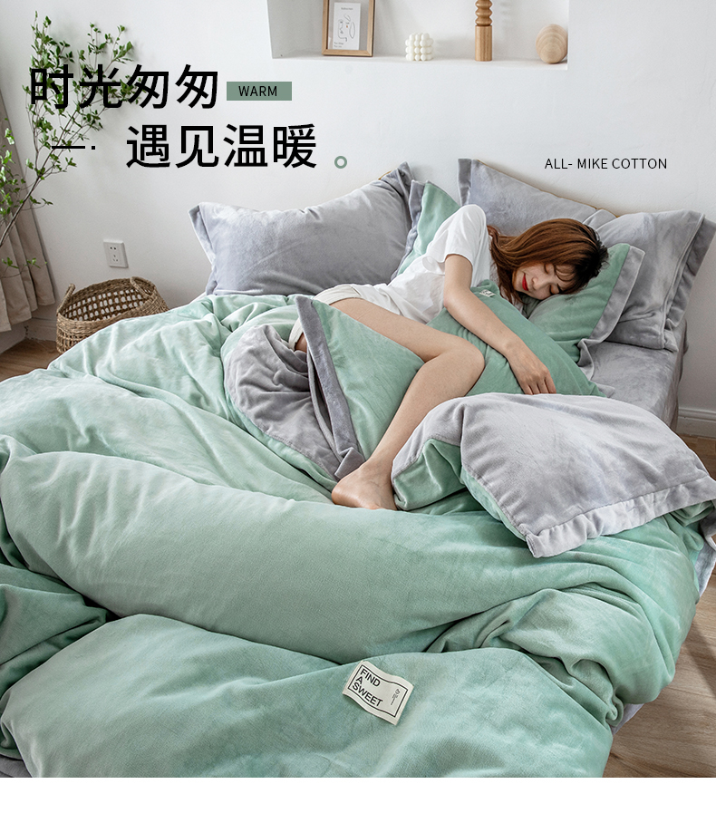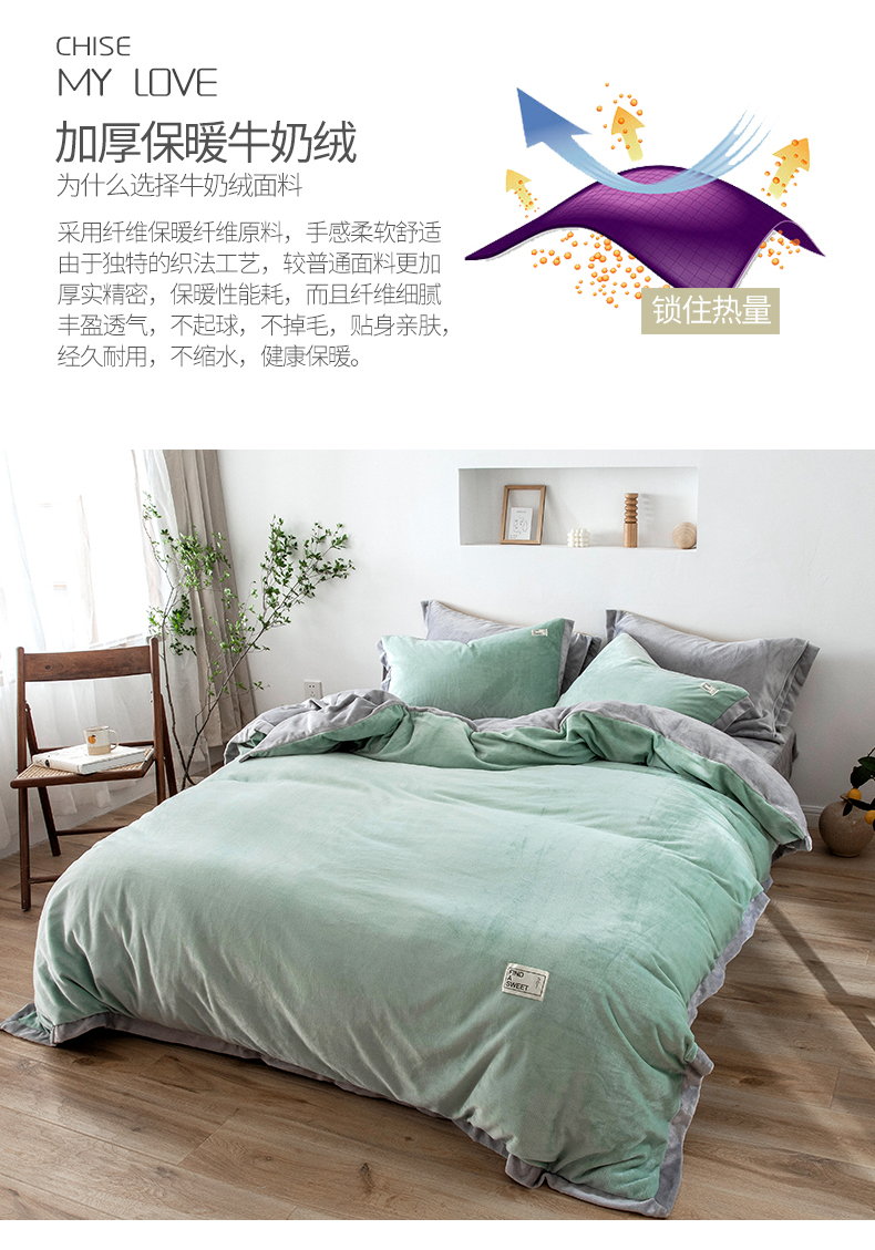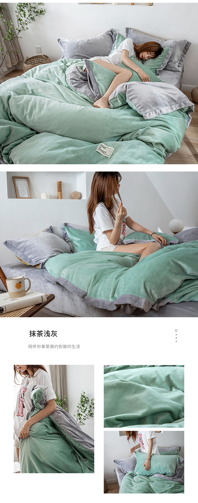 商品名称:润缦 2019新款牛奶绒终版四件套 抹茶浅灰