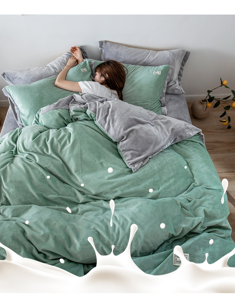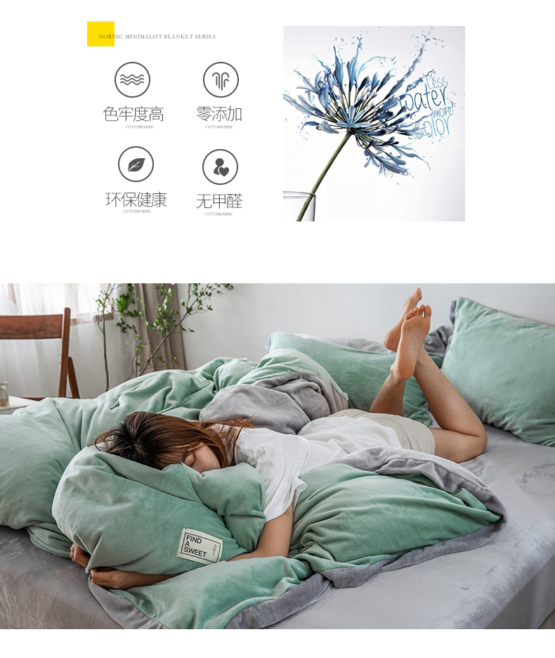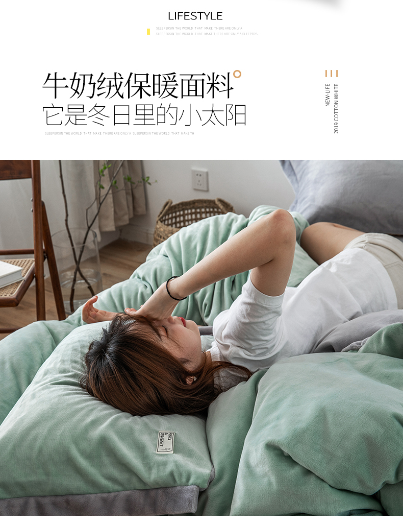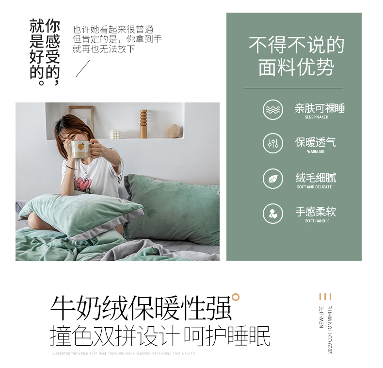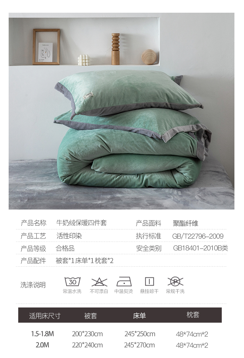 商品名称:润缦 2019新款牛奶绒终版四件套 抹茶浅灰