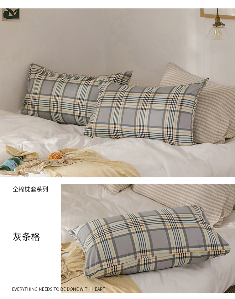 艾沁 2020新款13372全棉枕套48*74cm 灰条格