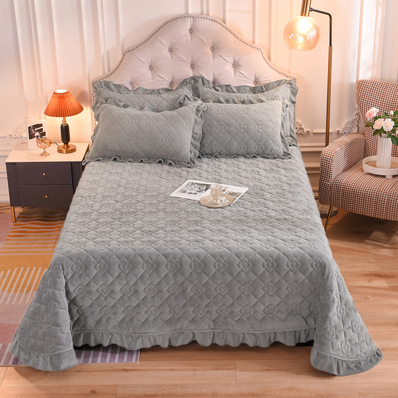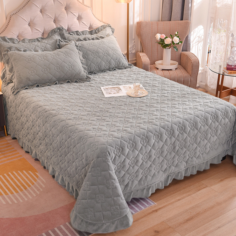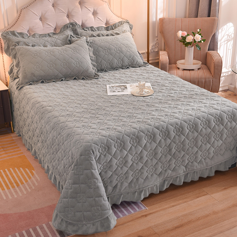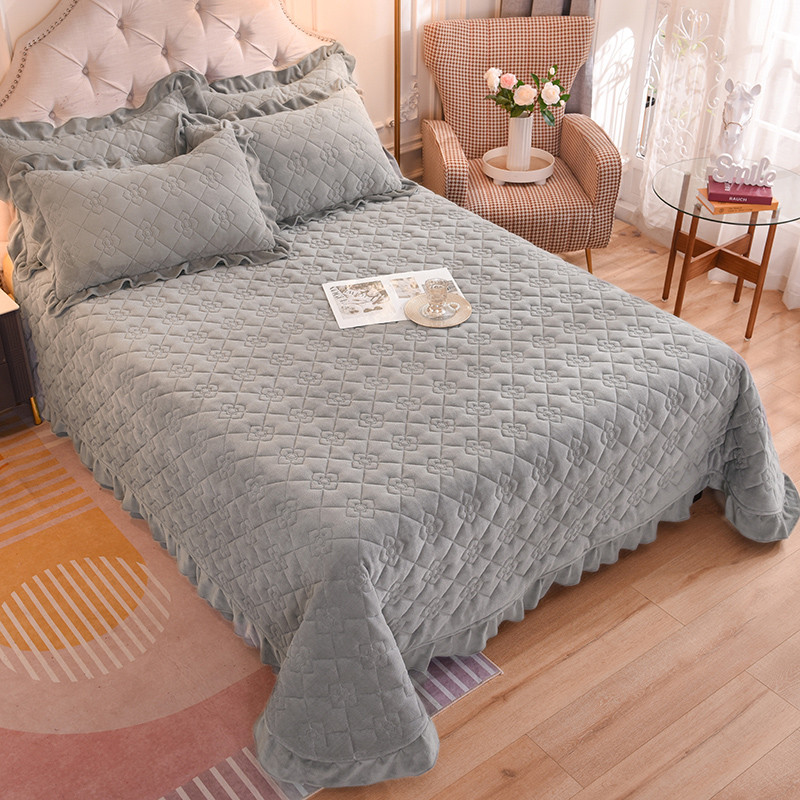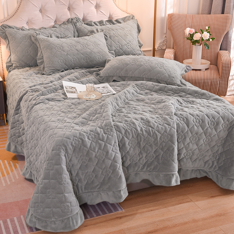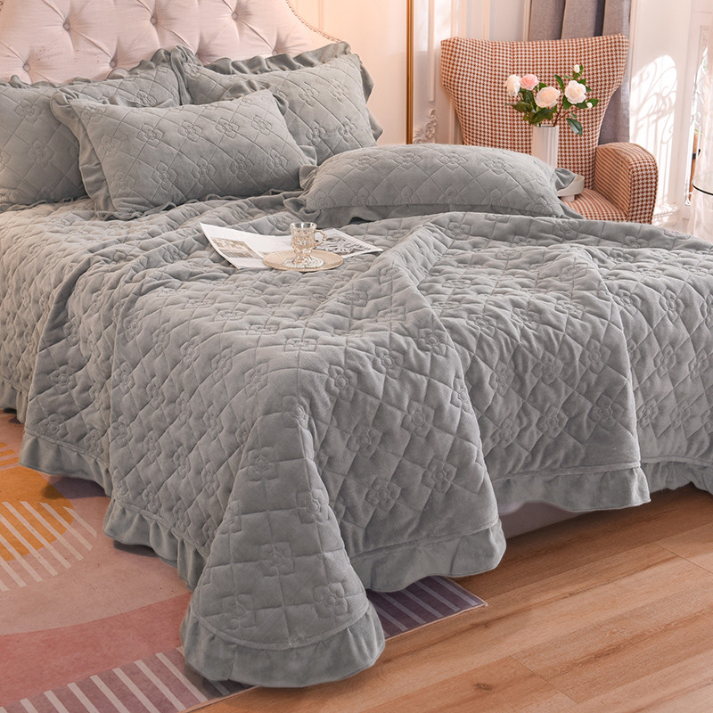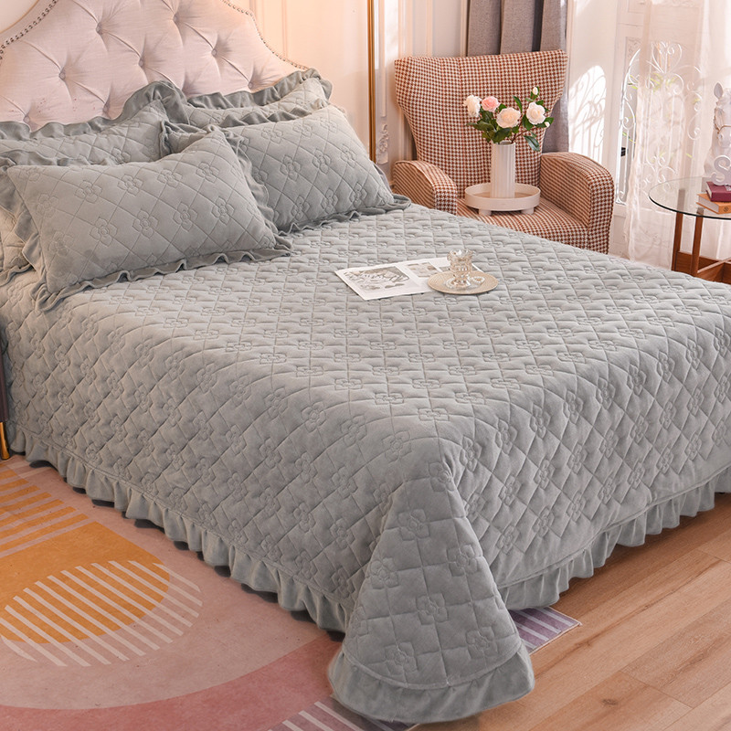 商品名称:甜之梦 2025新款纯色全棉夹棉防滑花边款床盖 银灰