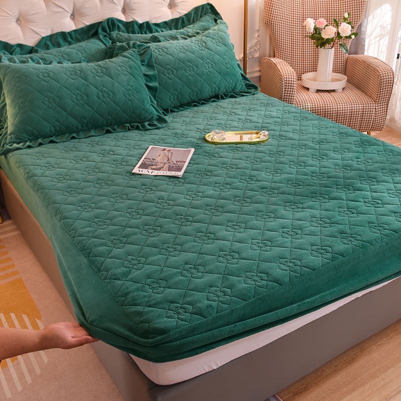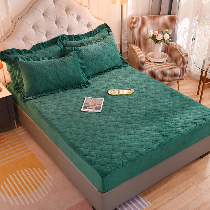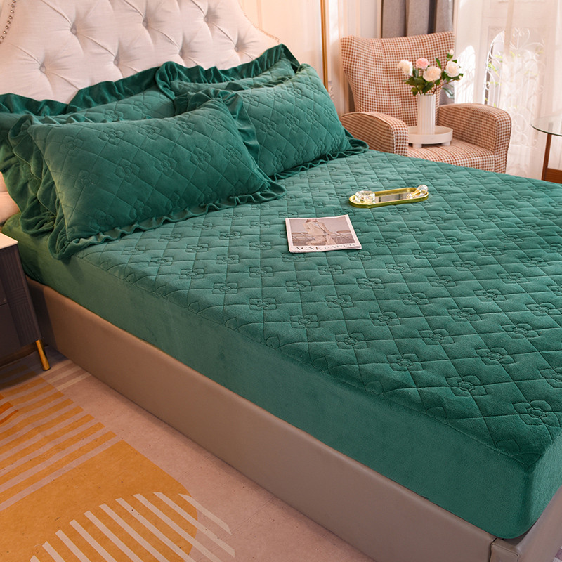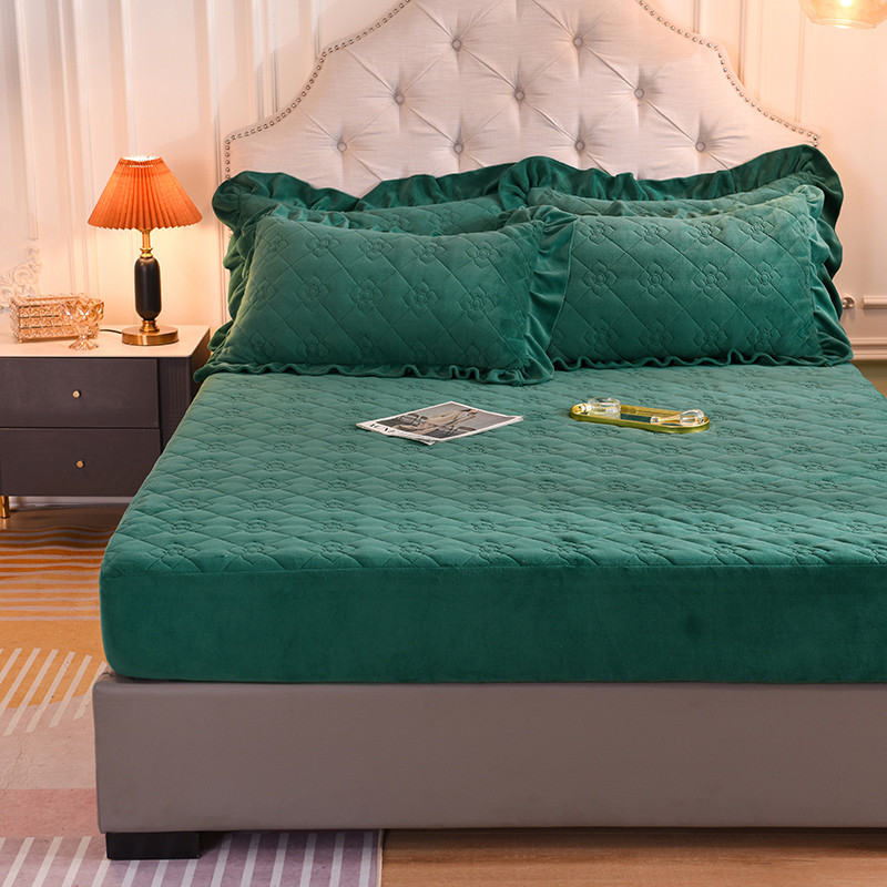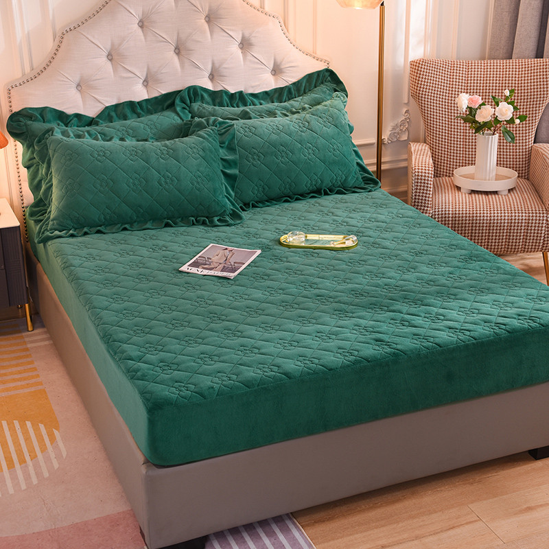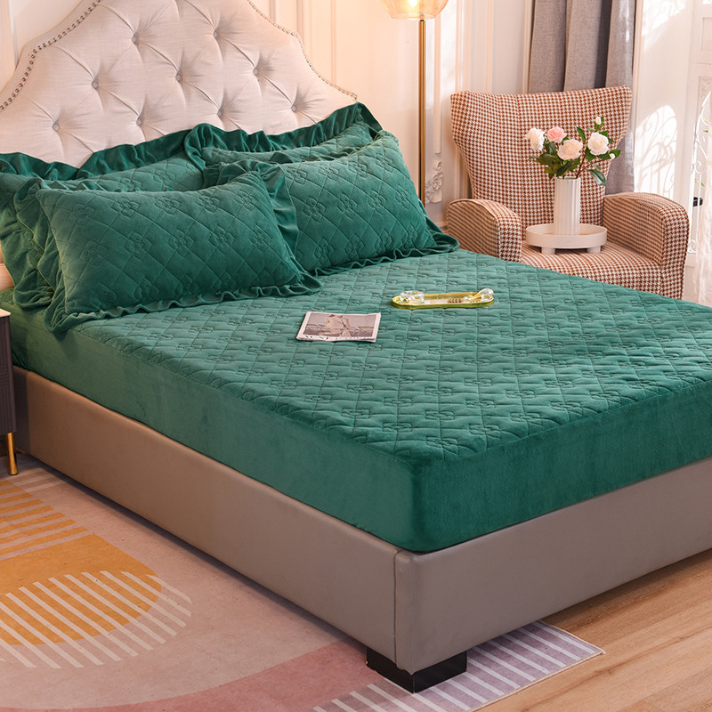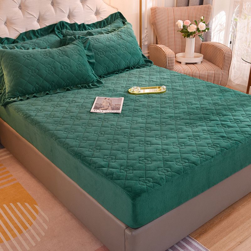 商品名称:甜之梦 2025新款牛奶绒夹棉防滑纯色床笠 墨绿