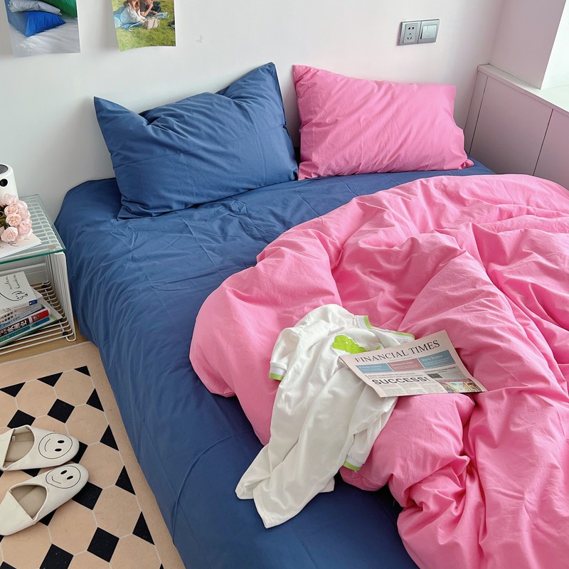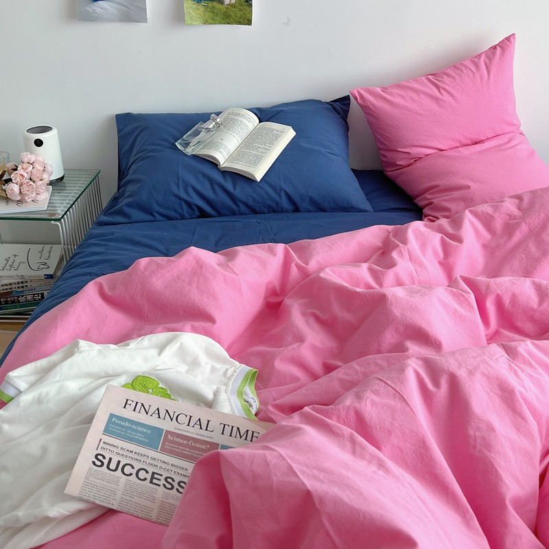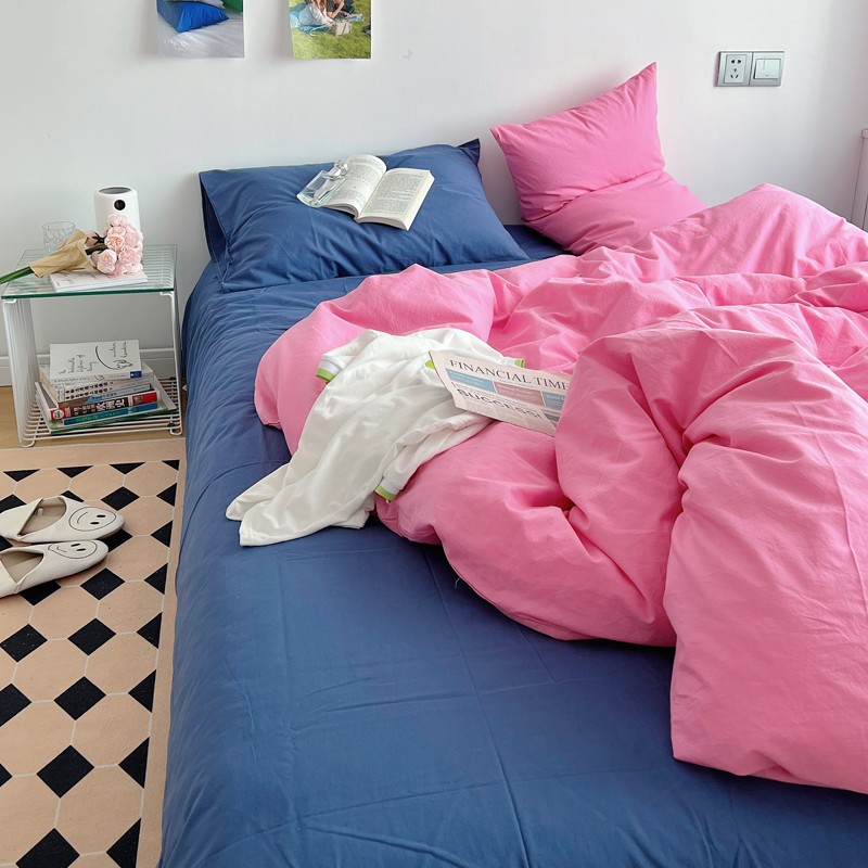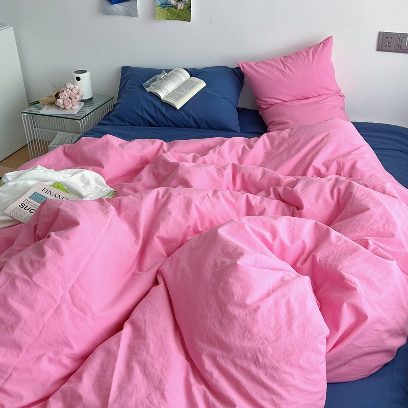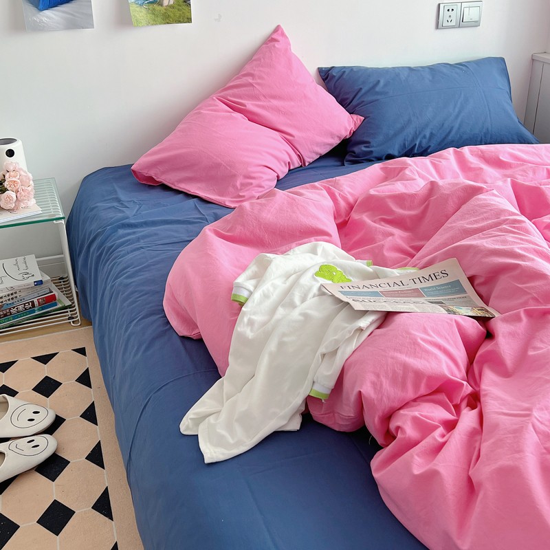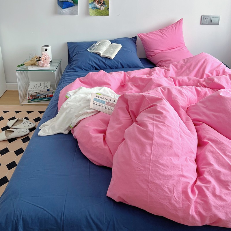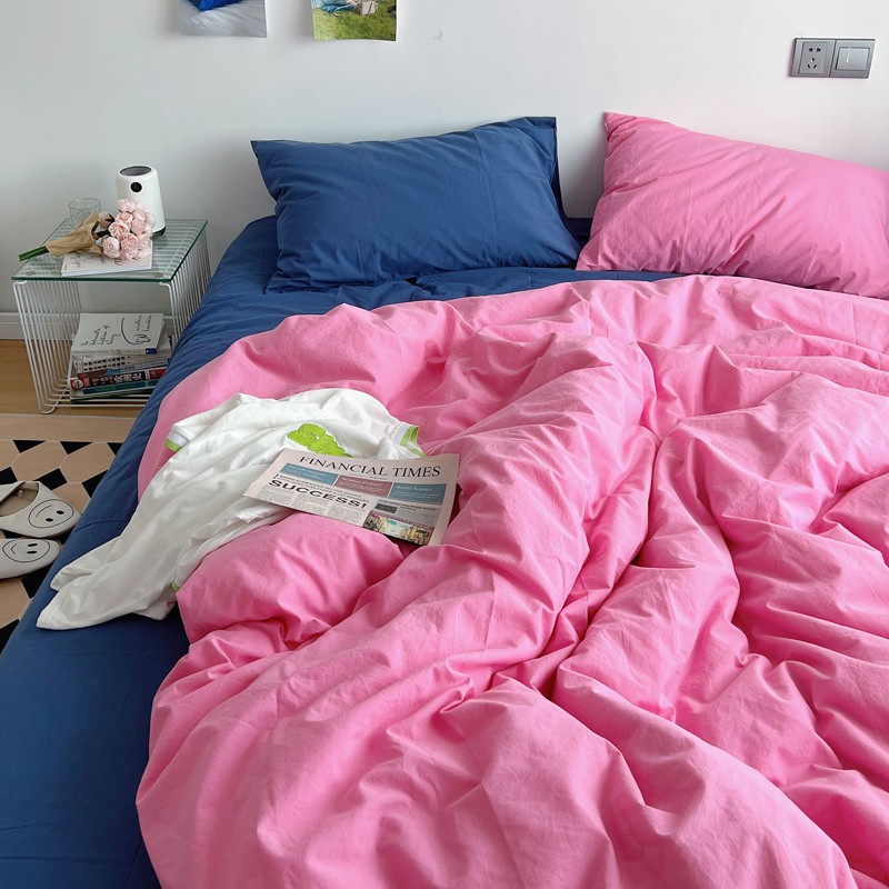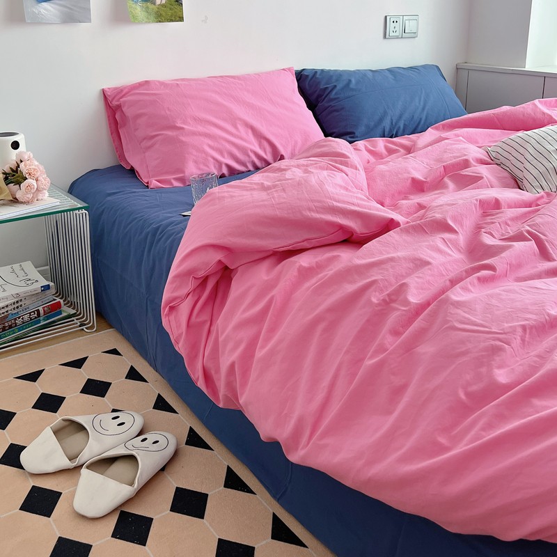 当前位置: 91家纺网 > 商品网购 > 床品套件 > 四件套 > 全棉普通四件套 > 全棉水洗棉纯色混搭四件套 蔷薇粉(枕套克莱因蓝+蔷薇粉)