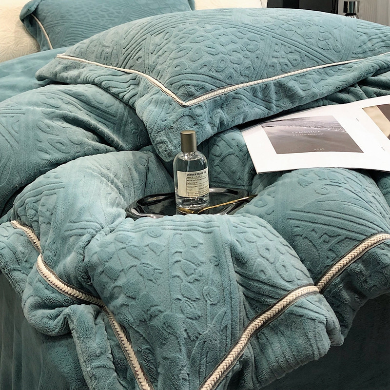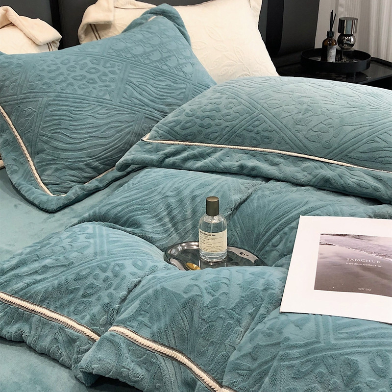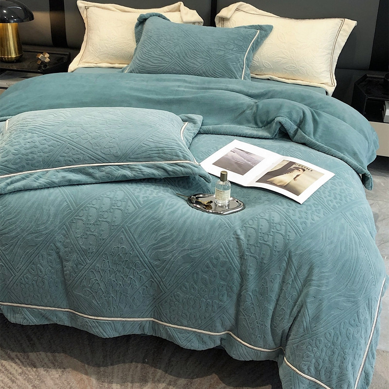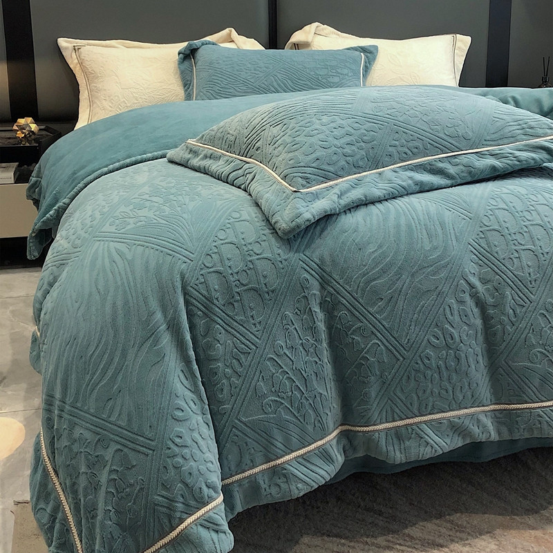 沐白家纺 2022牛奶绒四件套-香榭丽 香榭丽-钻蓝