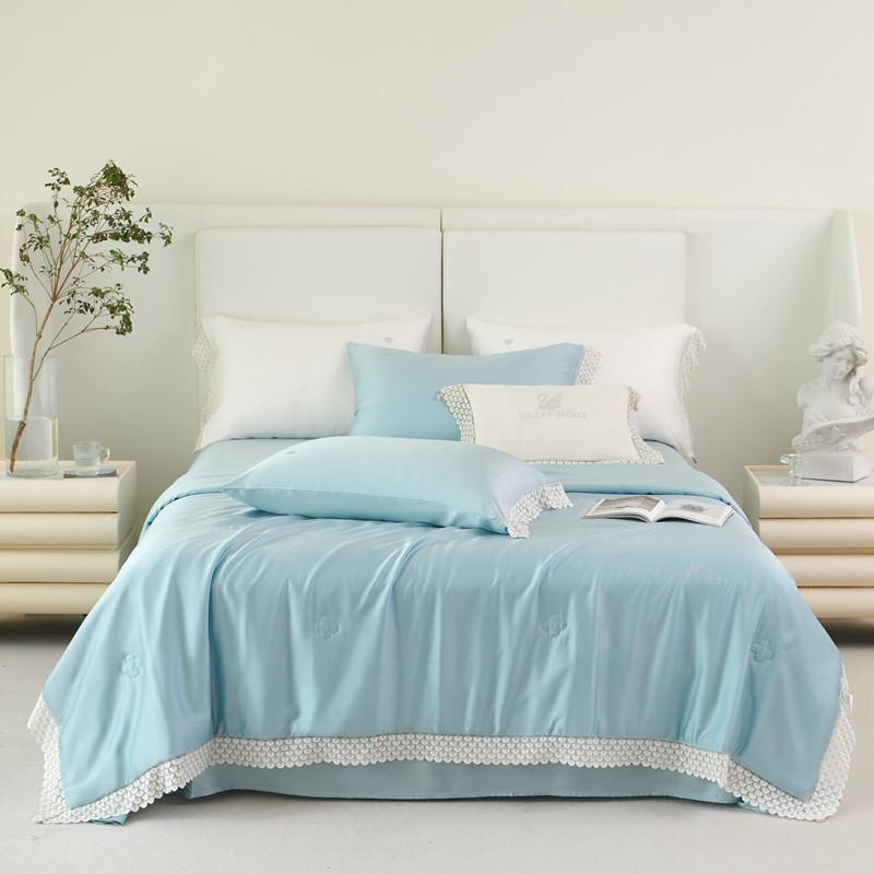 榻尚家居 2023新款60支法式蕾丝天丝夏被四件套 法式 蓝