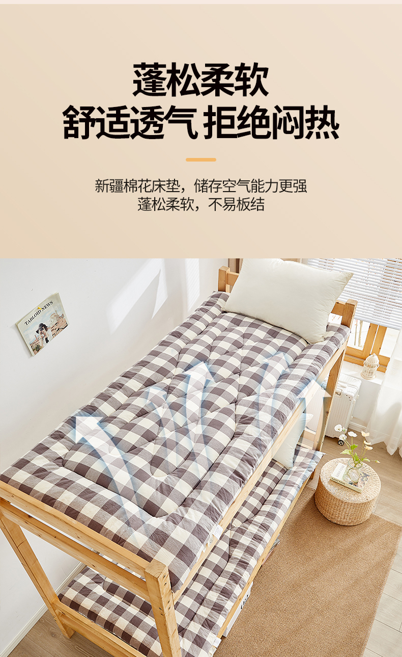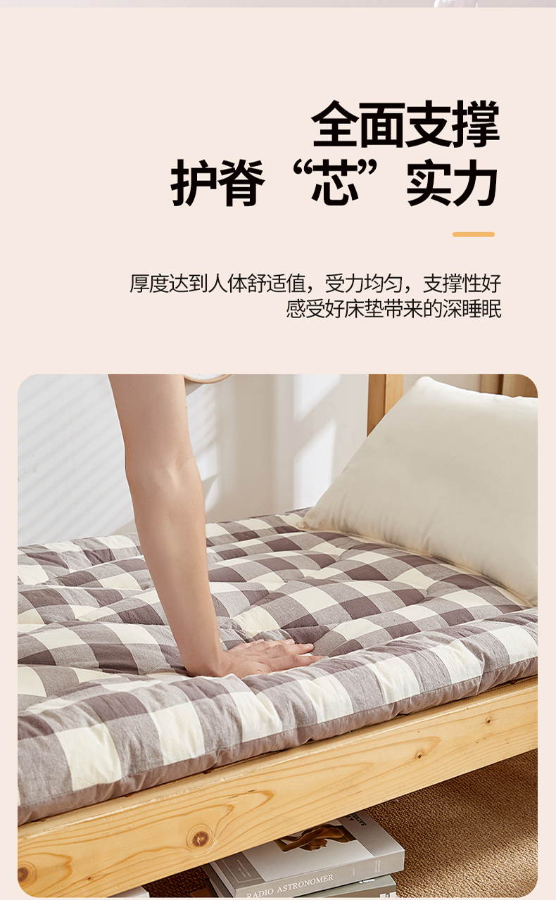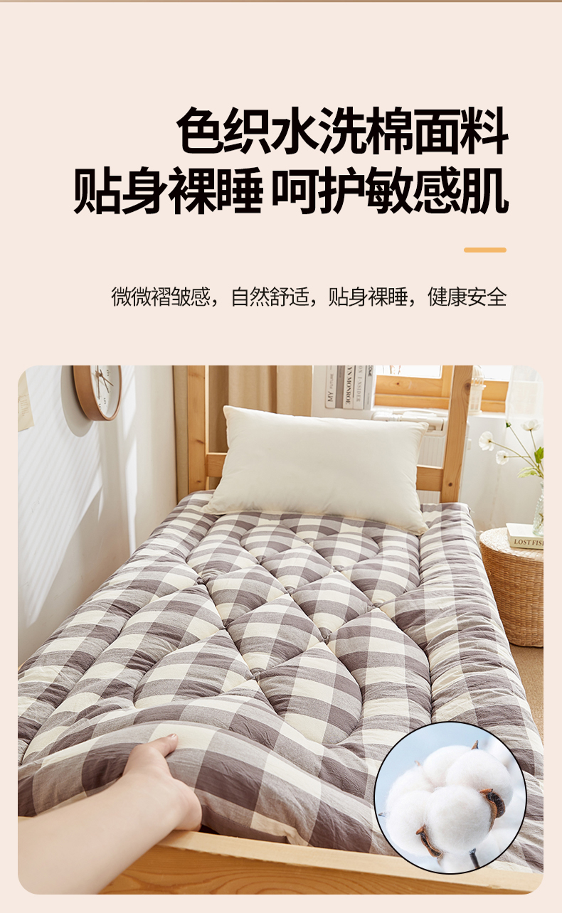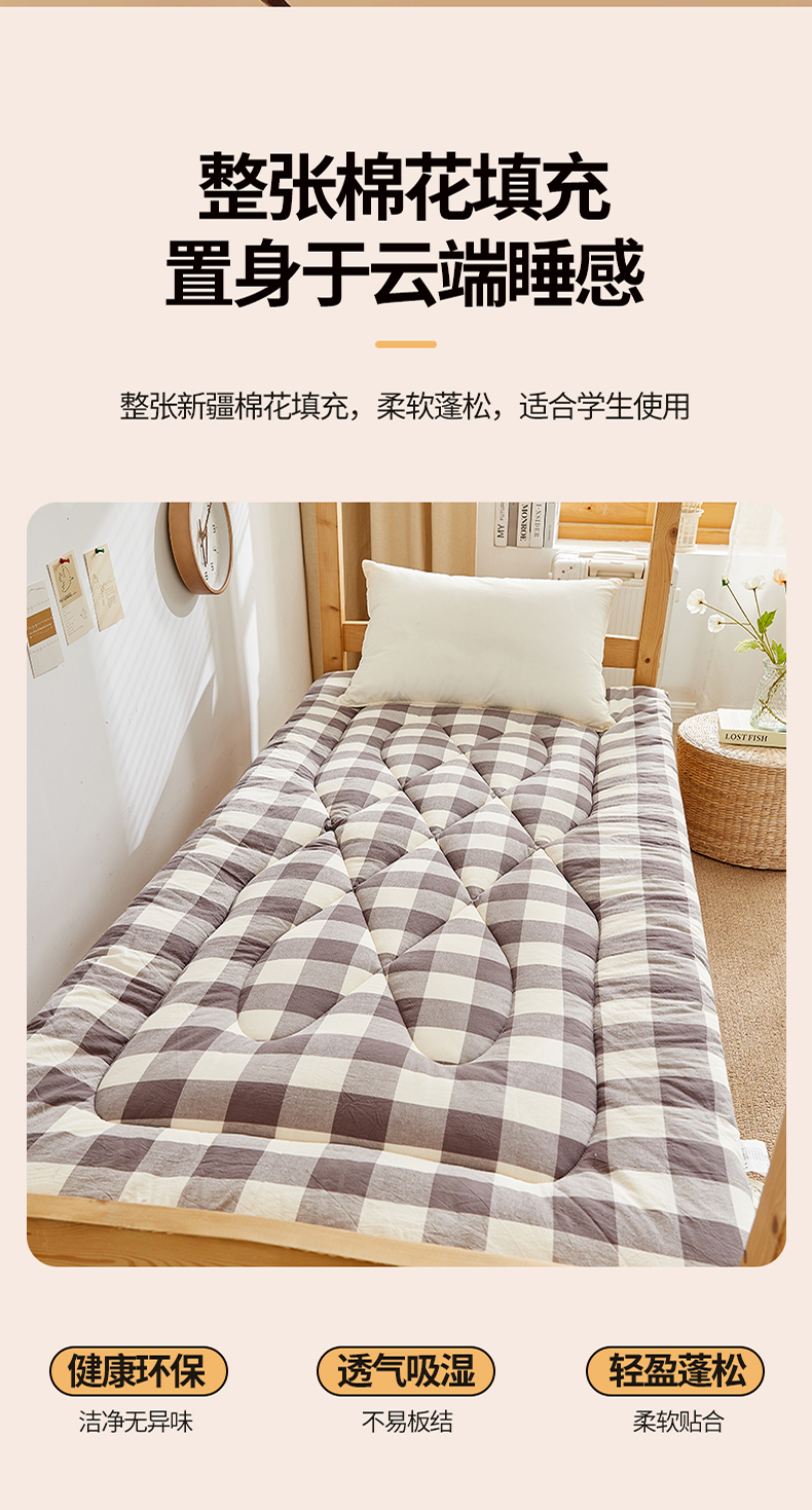 商品名称:格子铺 2024新款全棉水洗棉棉花学生床垫棉花床垫 灰中格