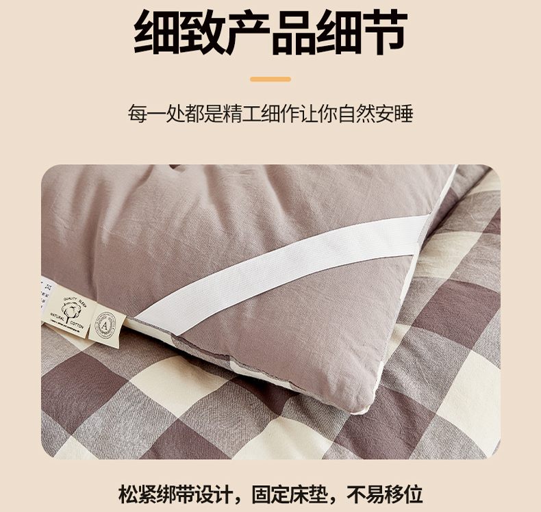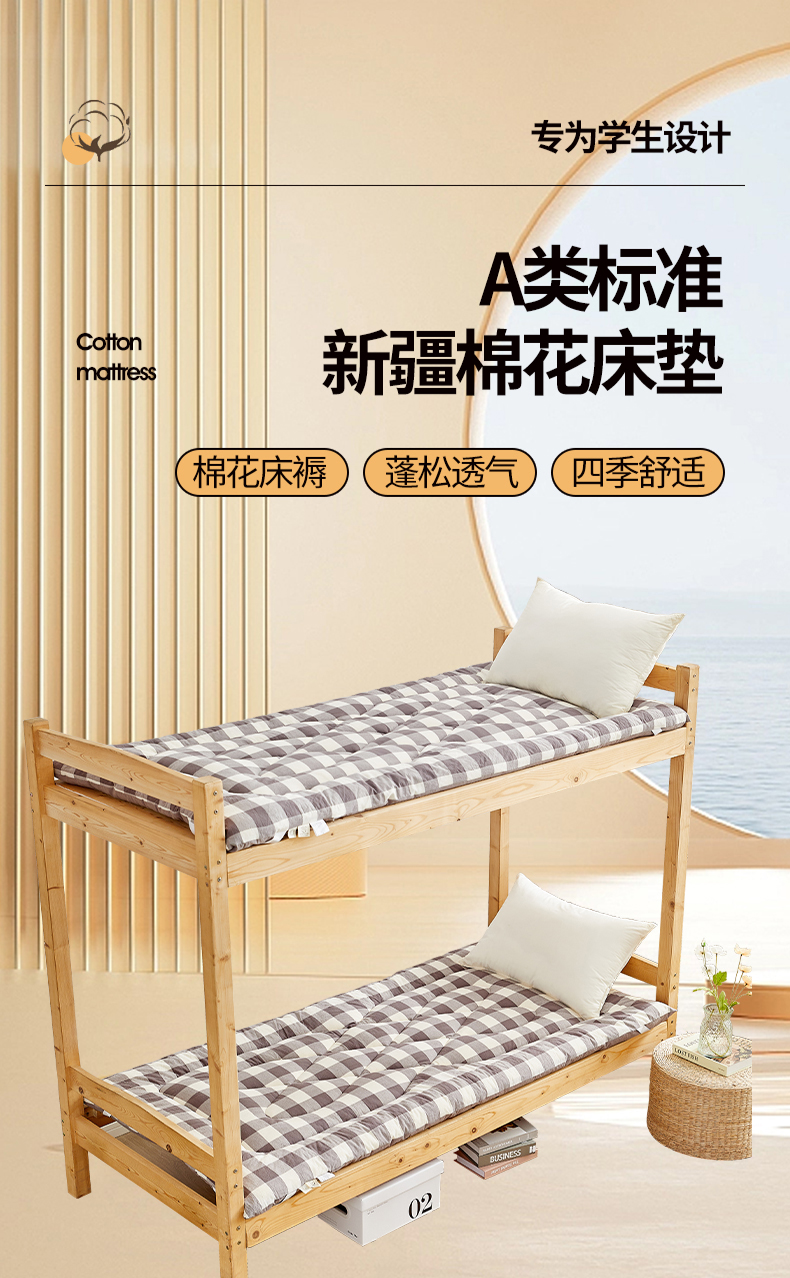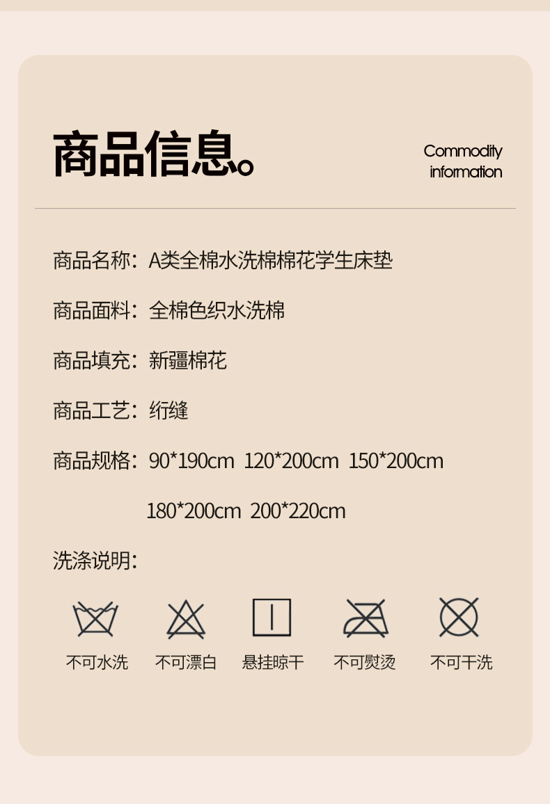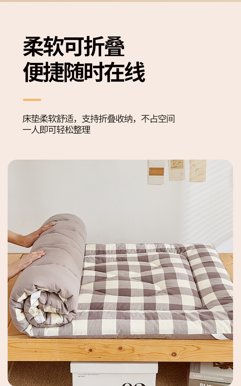 商品名称:格子铺 2024新款全棉水洗棉棉花学生床垫棉花床垫 灰中格
