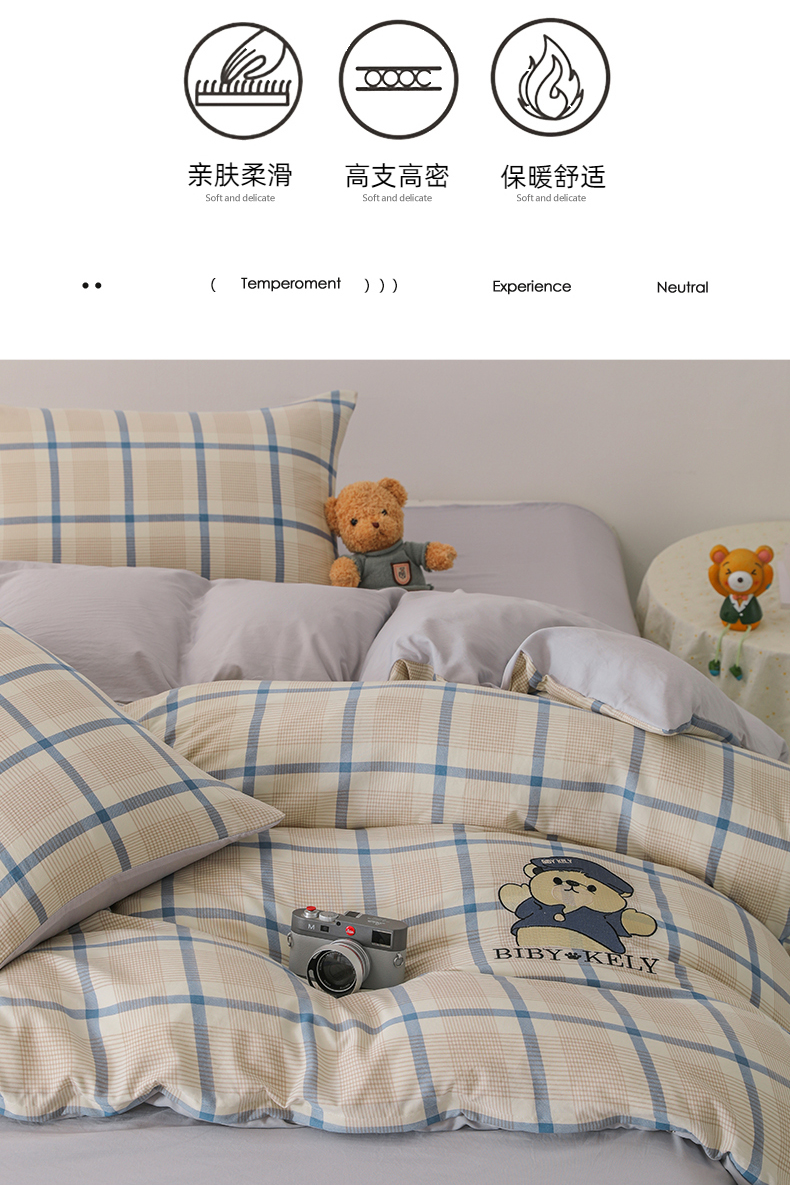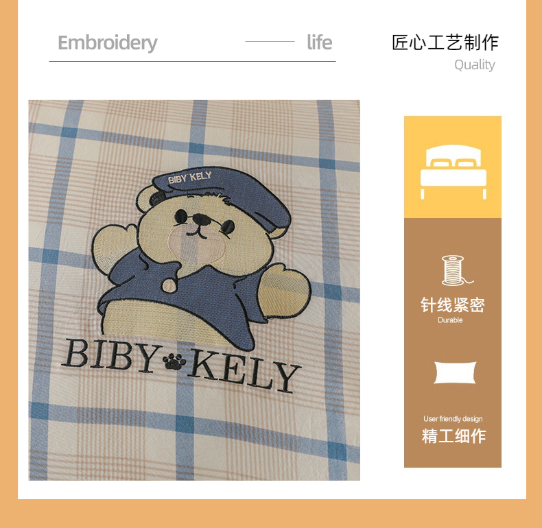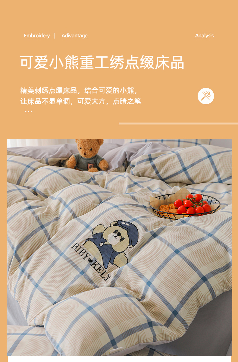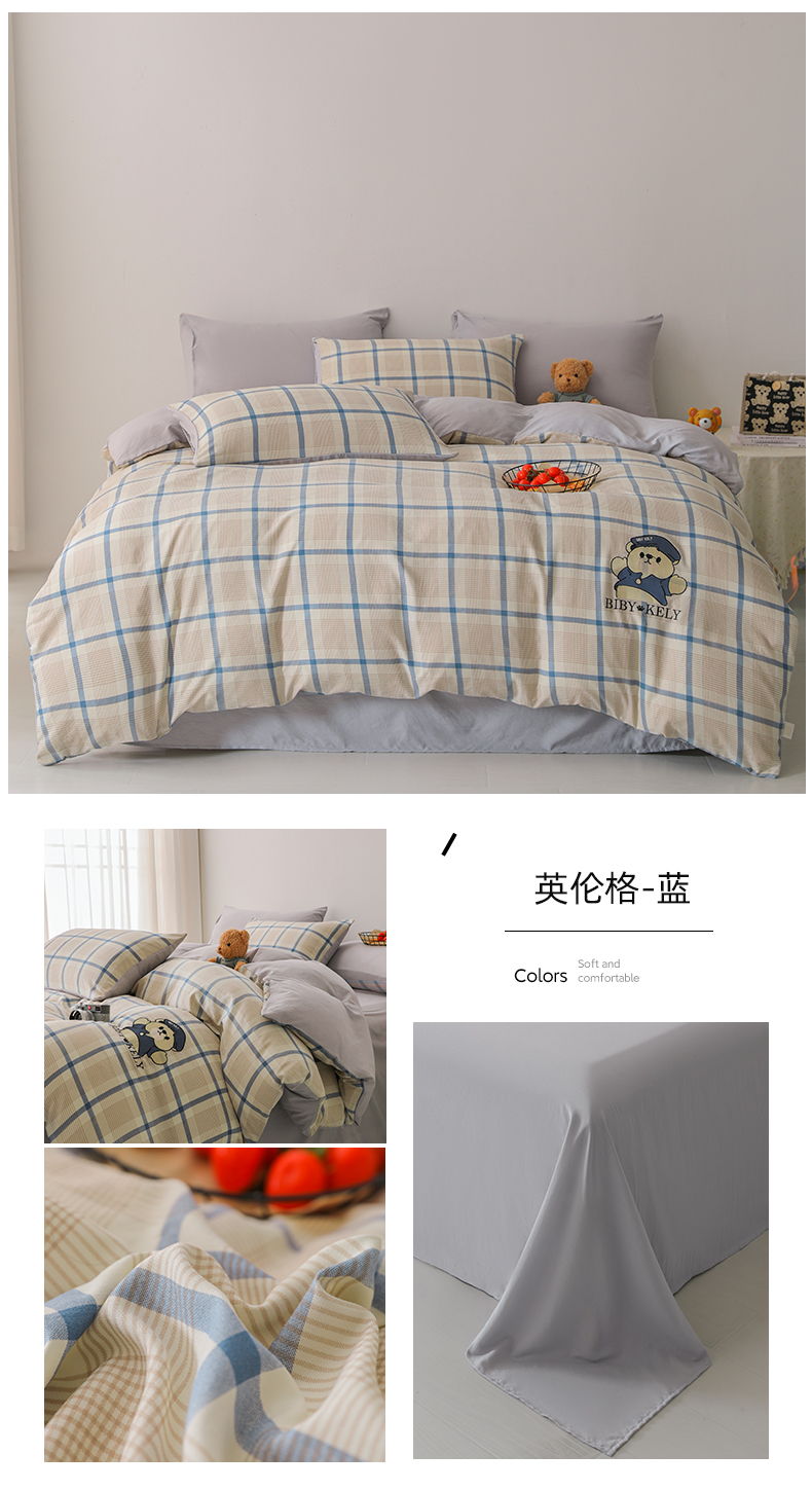 商品名称:潮邦创意家居 2025新款春夏亲肤水洗棉刺绣四件套-贝恩熊 贝恩熊-英伦蓝