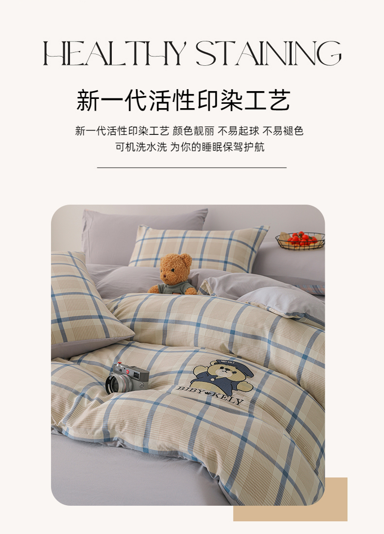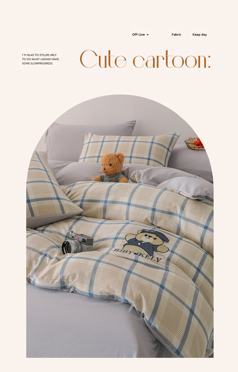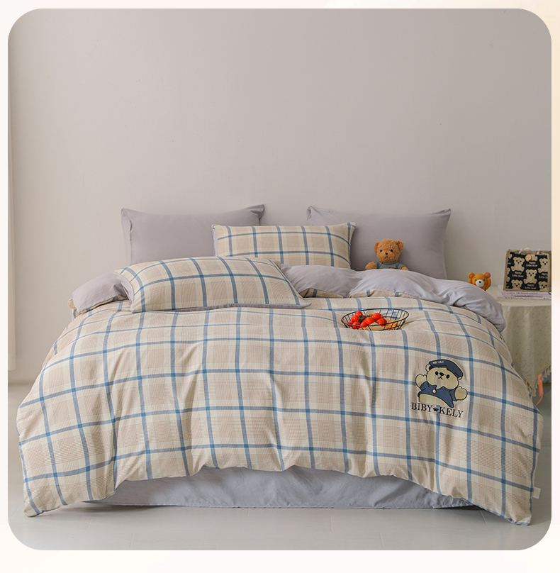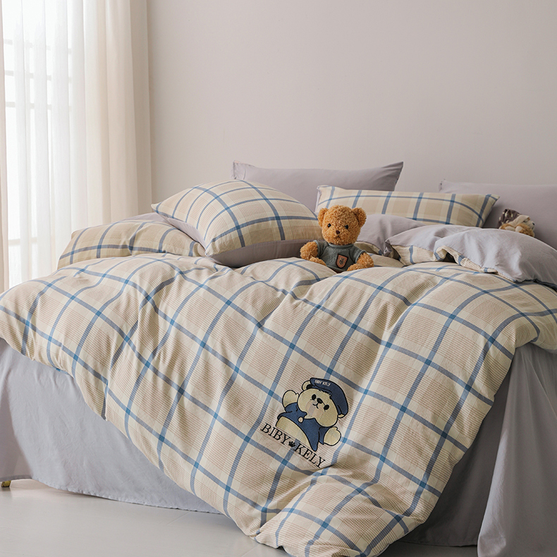 潮邦创意家居 2025新款春夏亲肤水洗棉刺绣四件套-贝恩熊 贝恩熊-英伦蓝