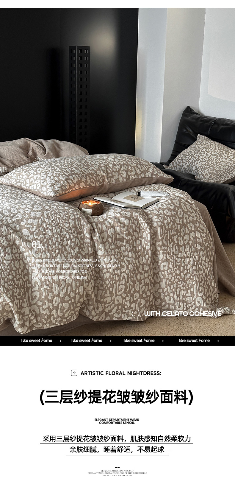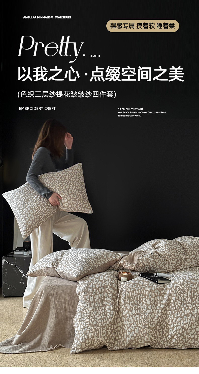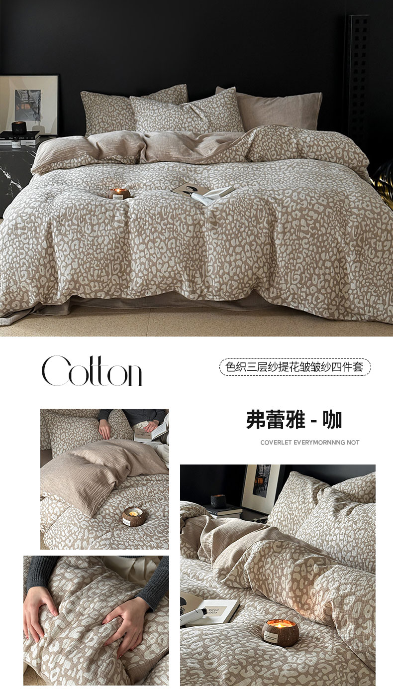 商品名称:山舍家居 2024新款三层纱提花四件套弗雷亚 弗蕾雅-咖