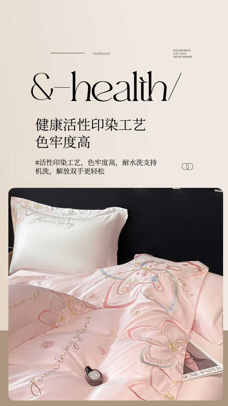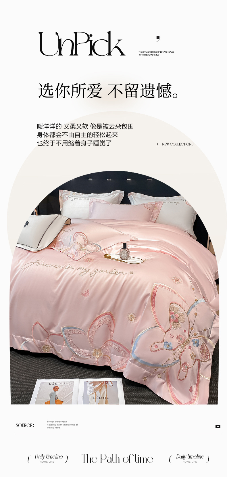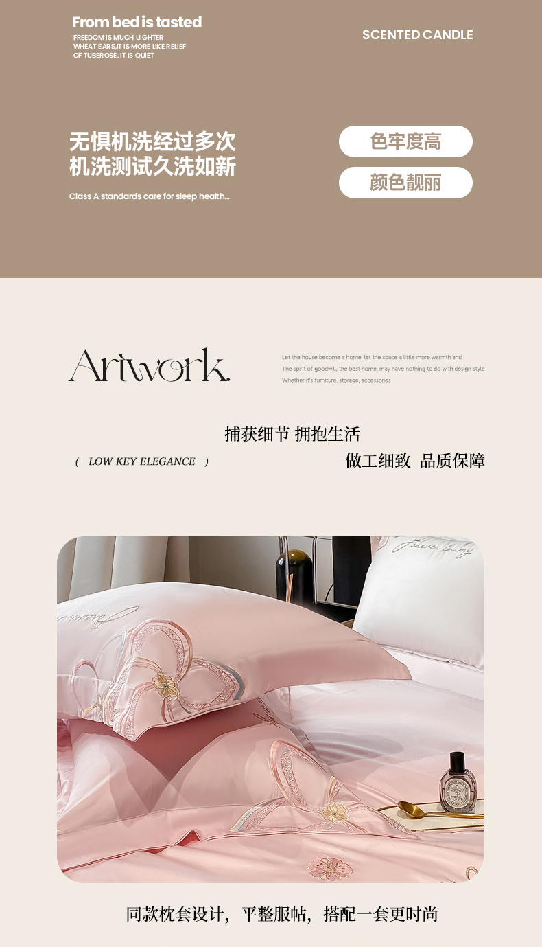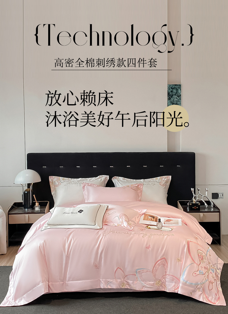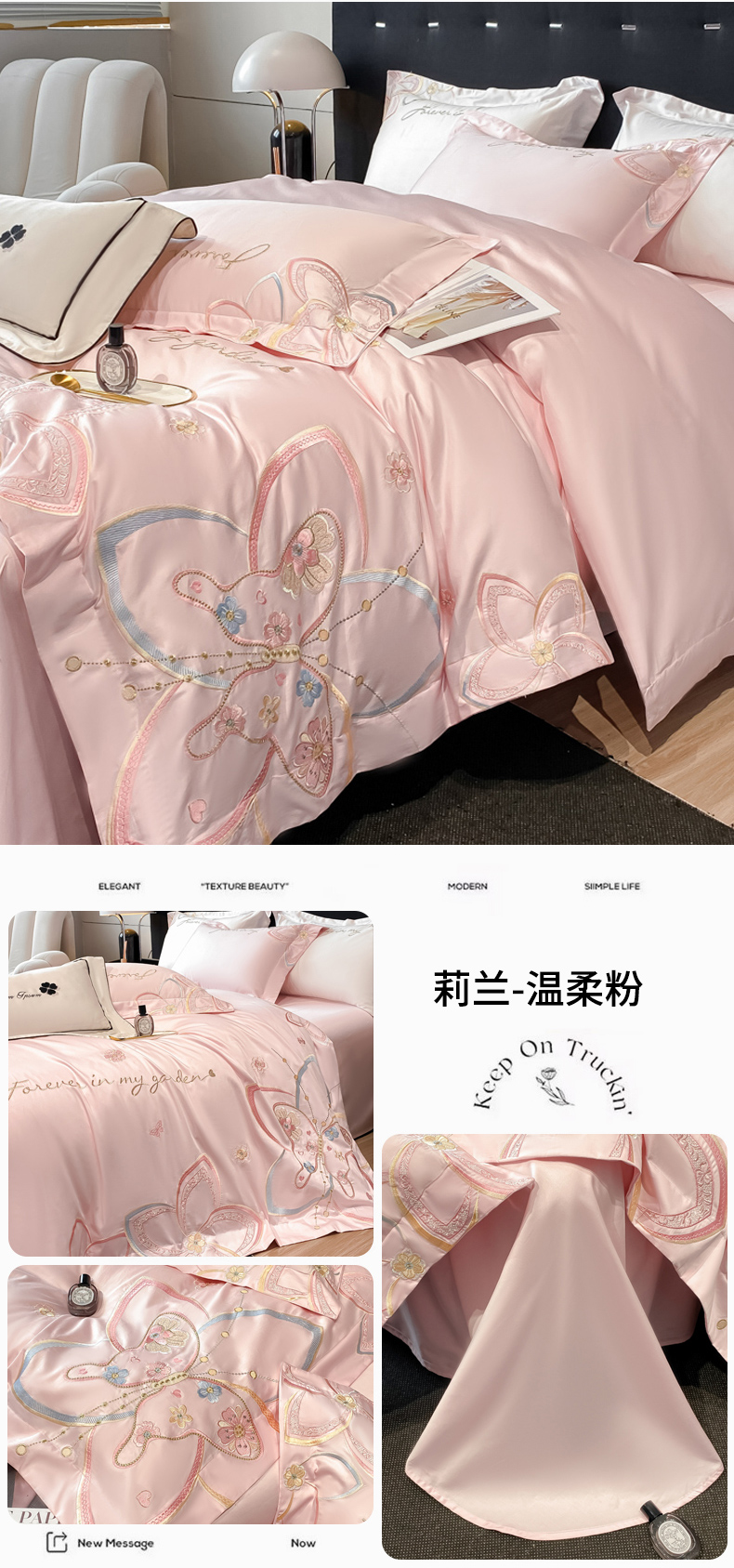 星蕴家纺 2024新款喷气全工艺纯棉四件套-莉兰 莉兰温柔粉
