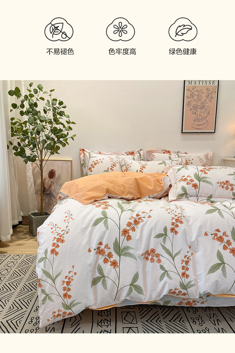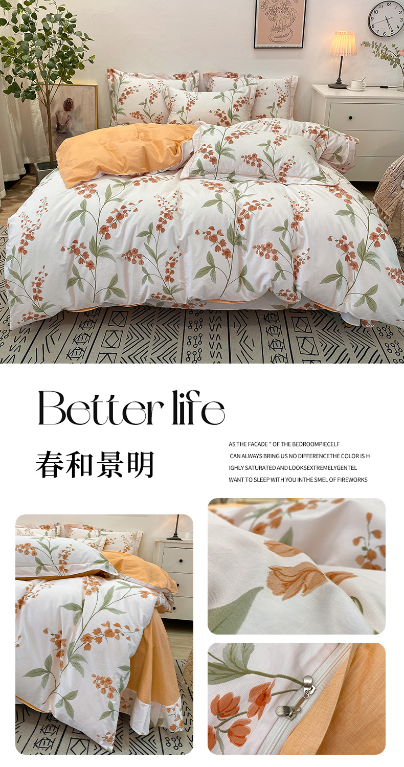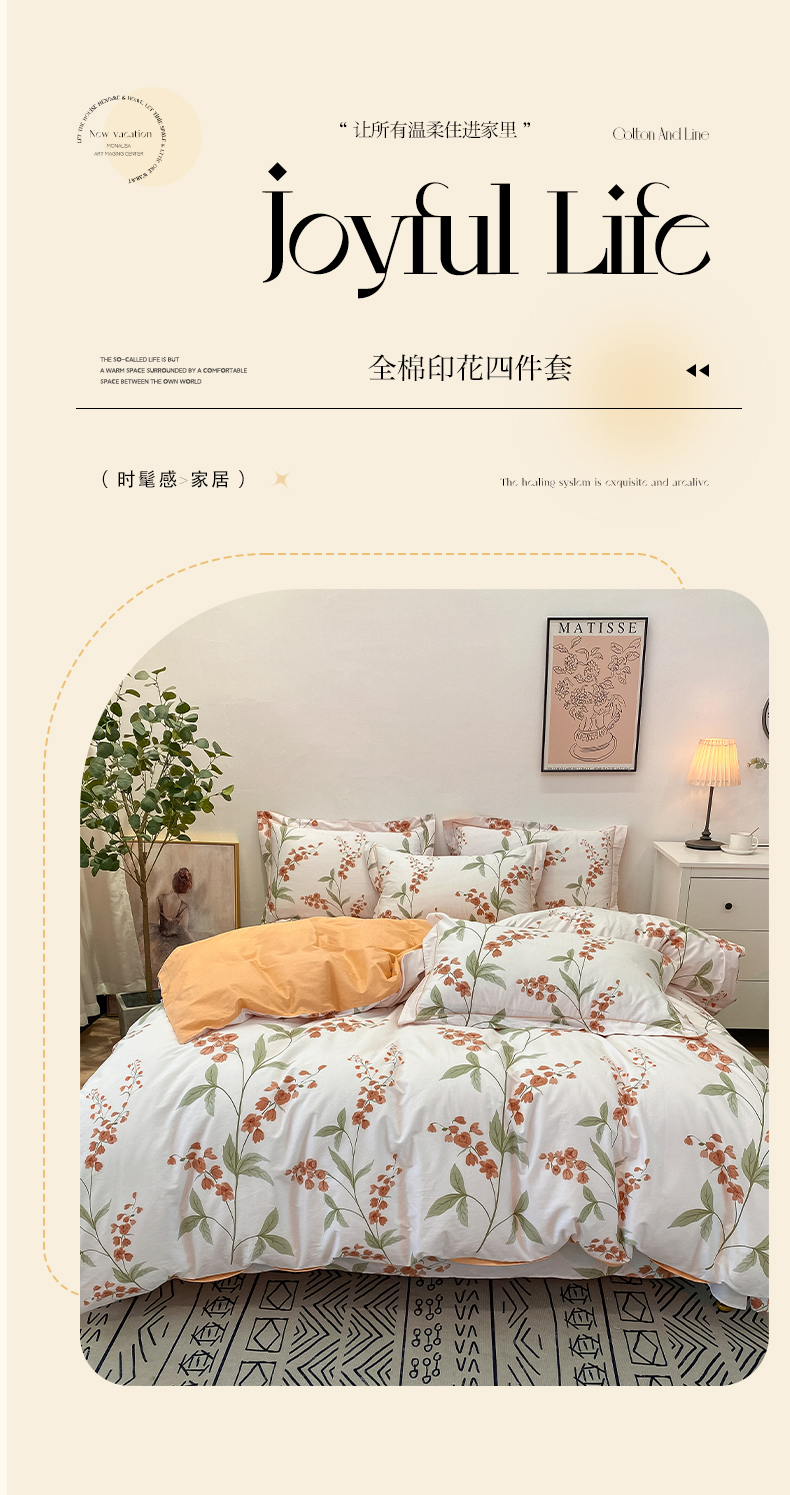 商品名称:橙艺家居 2024新款铂金柔棉全棉印花四件套 春和景明