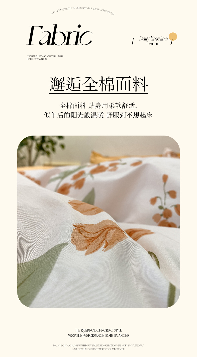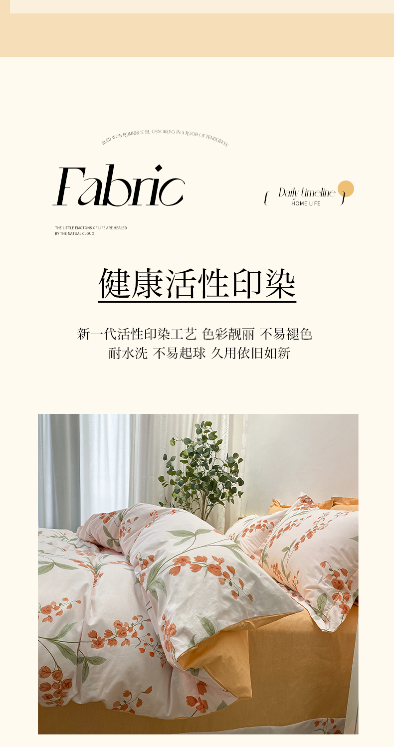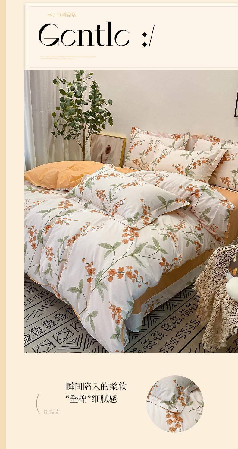 商品名称:橙艺家居 2024新款铂金柔棉全棉印花四件套 春和景明