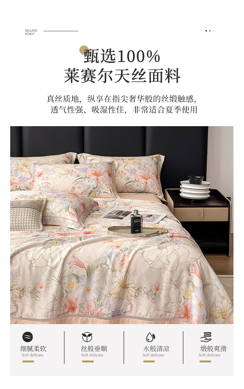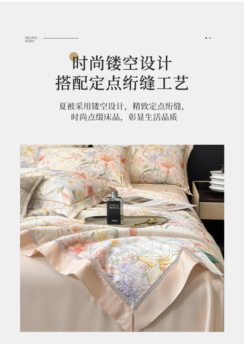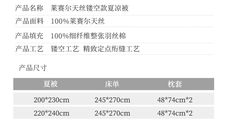 商品名称:娇逸家居 2025新款50支印花莱赛尔天丝夏被镂空款花边夏凉被 夏莼