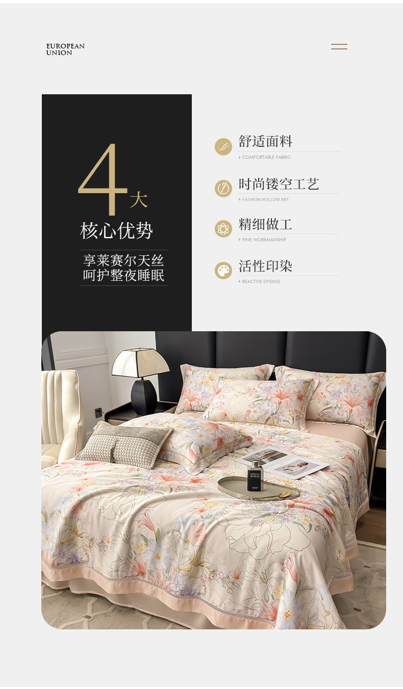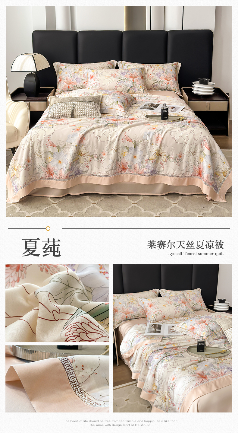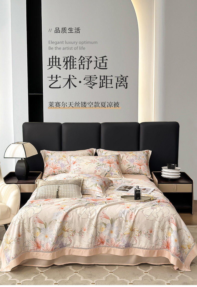 娇逸家居 2025新款50支印花莱赛尔天丝夏被镂空款花边夏凉被 夏莼