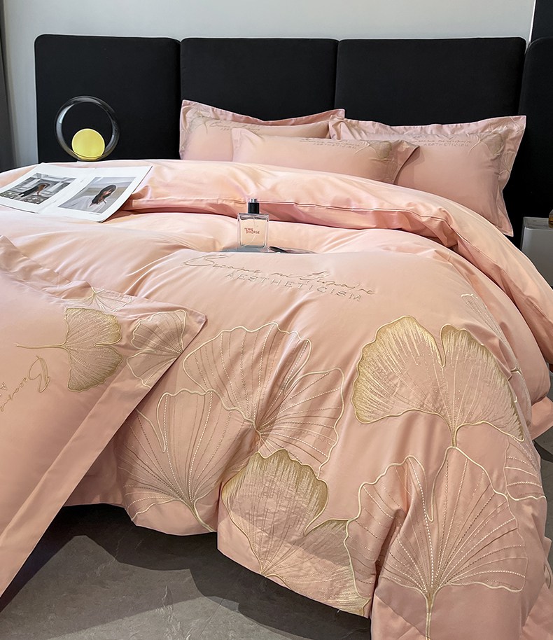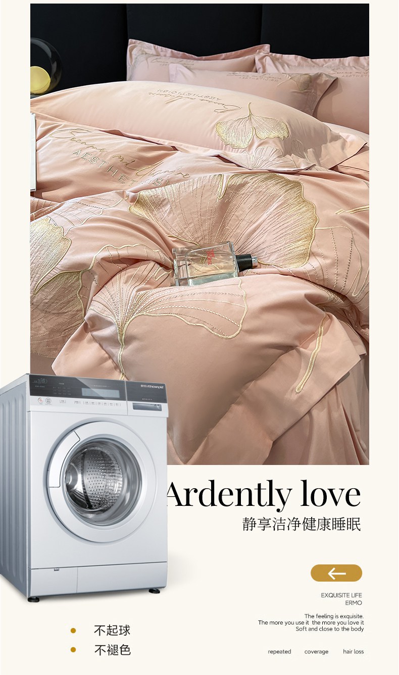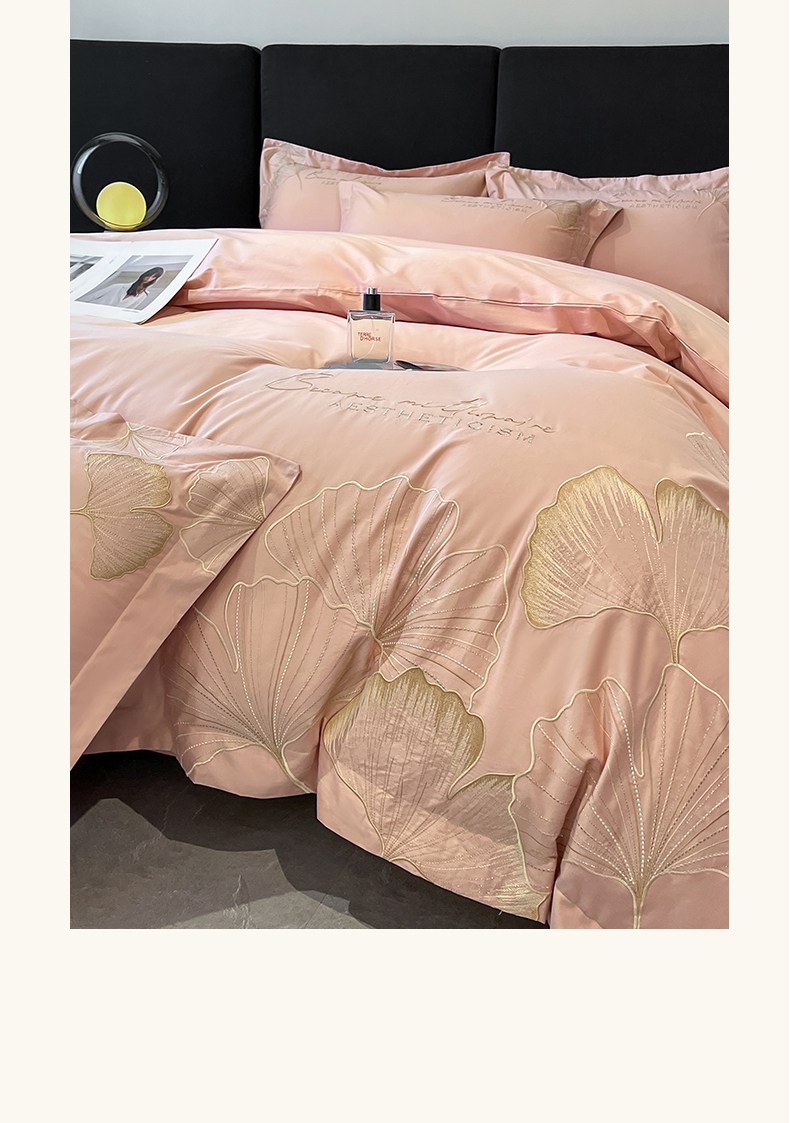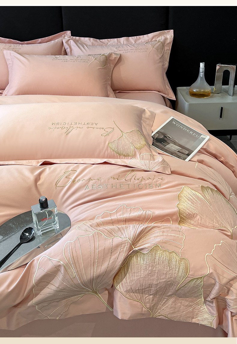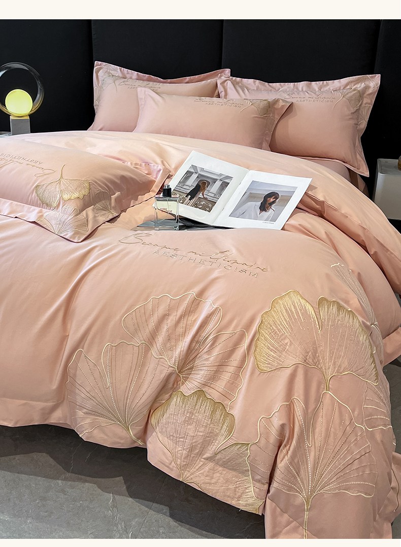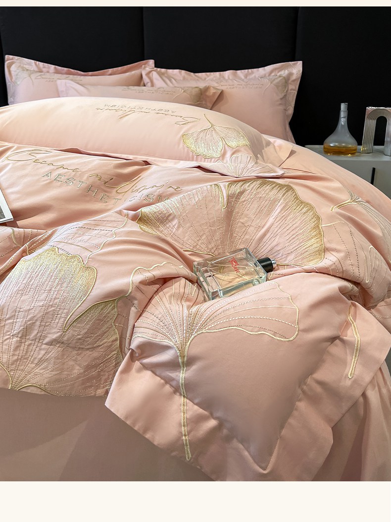金牛座家纺 2025新款全棉刺绣四件套-三生有杏(配高档礼盒) 三生有杏-浅豆沙