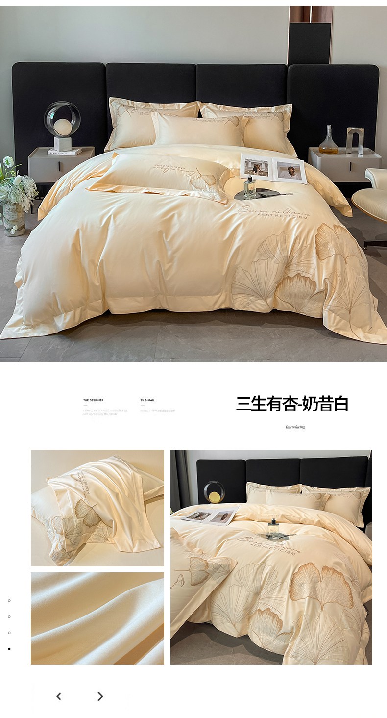 商品名称:金牛座家纺 2025新款全棉刺绣四件套-三生有杏(配高档礼盒) 三生有杏-浅豆沙