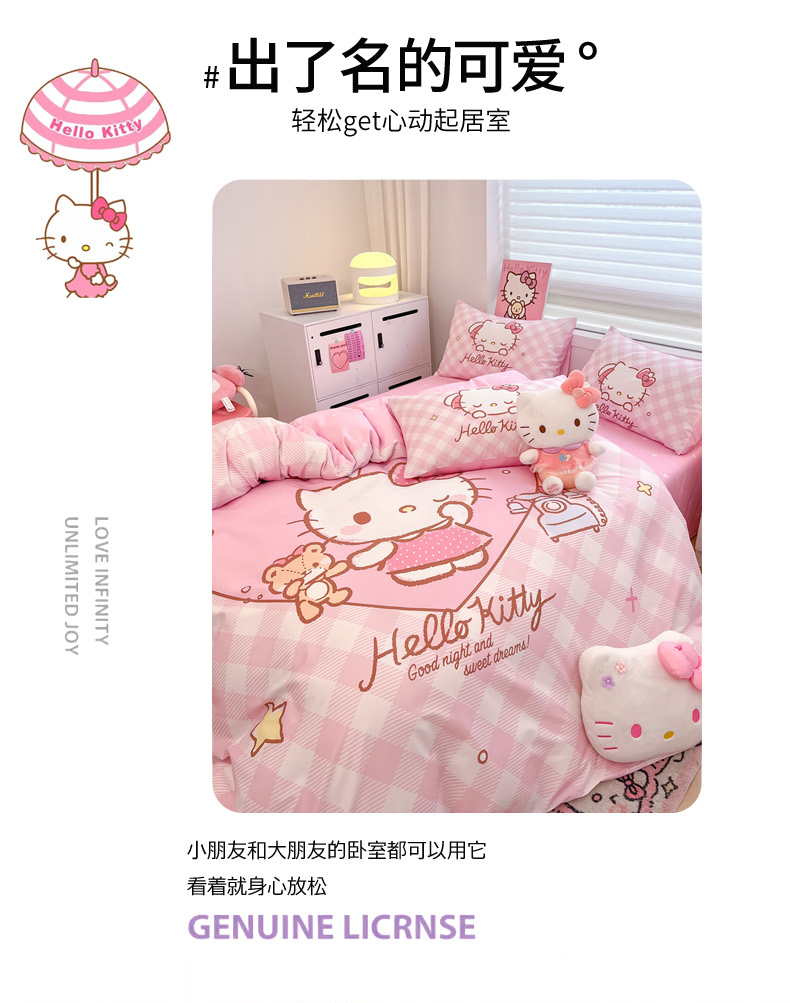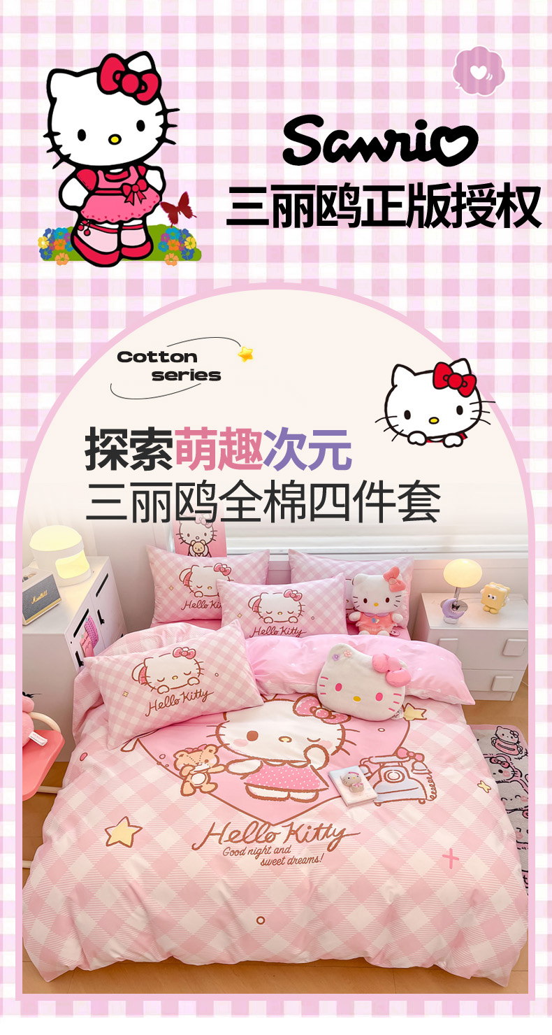 当前位置: 91家纺网 > 商品网购 > 床品套件 > 四件套 > 全棉普通四件套 > 暮思家居 2025新款正版授权三丽鸥大阪全棉数码印花纯棉四件套系列-第三批(专版花型) 大版-爱心KT