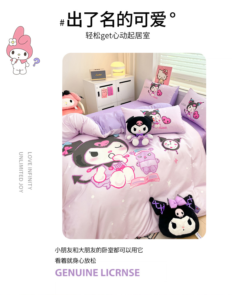 当前位置: 91家纺网 > 商品网购 > 床品套件 > 四件套 > 全棉普通四件套 > 暮思家居 2025新款正版授权三丽鸥大阪全棉数码印花纯棉四件套系列-第三批(专版花型) 大版-学霸库洛米