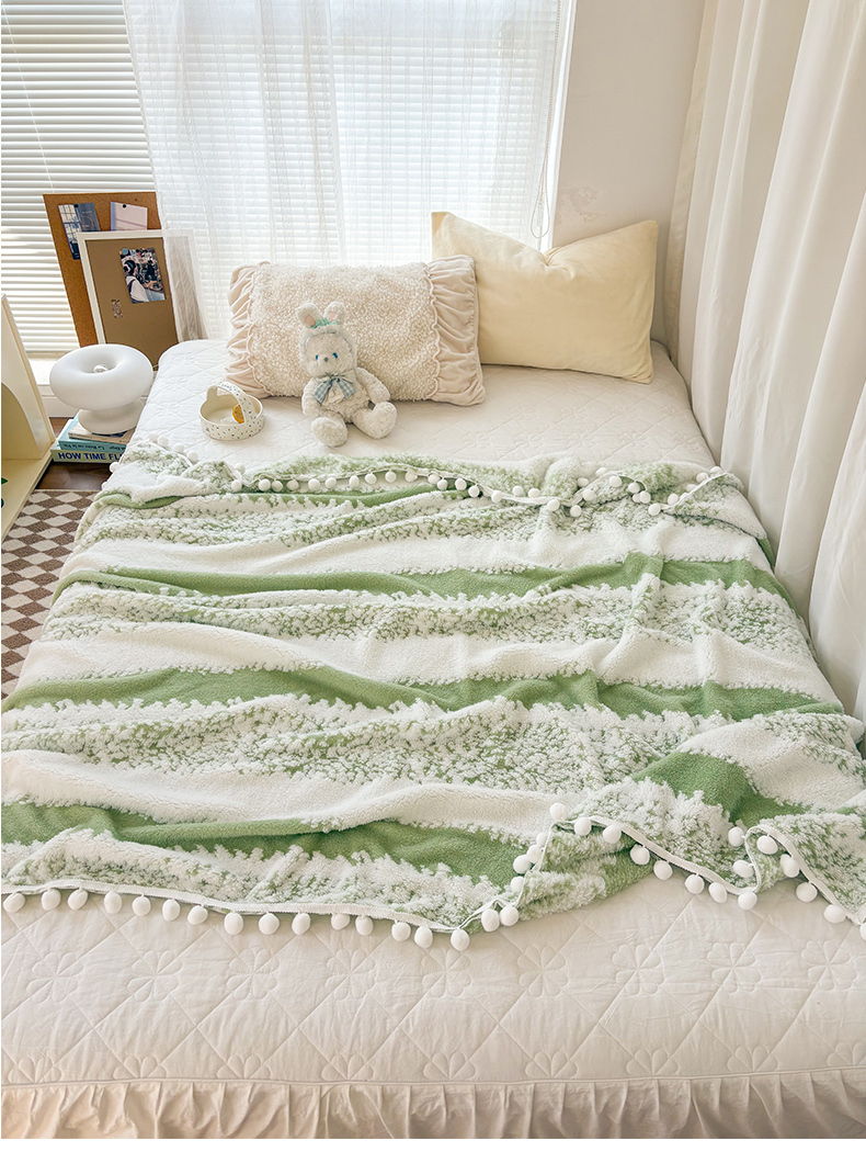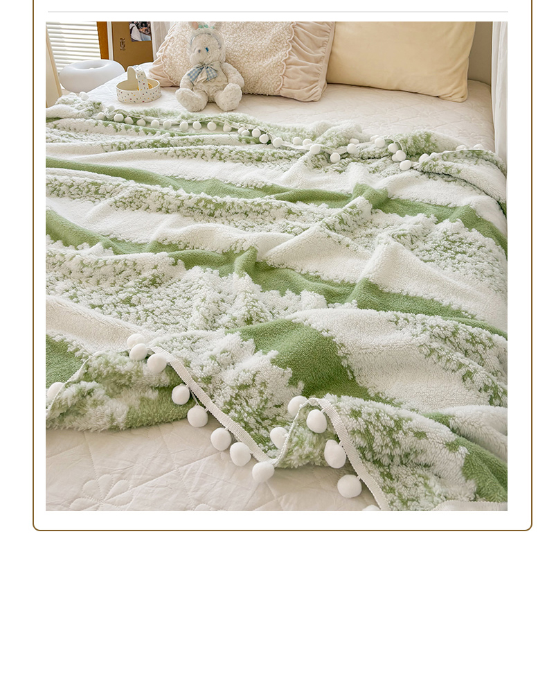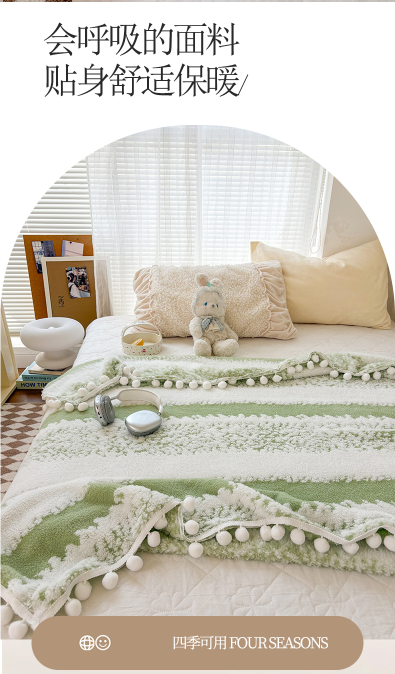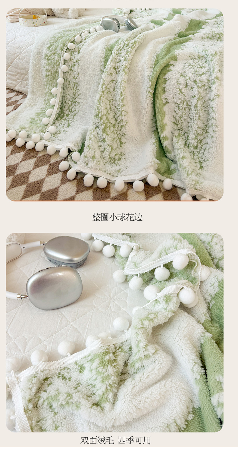 (总)潮邦创意家居 2025新款 奶芙绒流苏球毛毯,薄荷绿,焦糖咖,绵云白,浅蓝灰,深暮灰,甜莓粉
